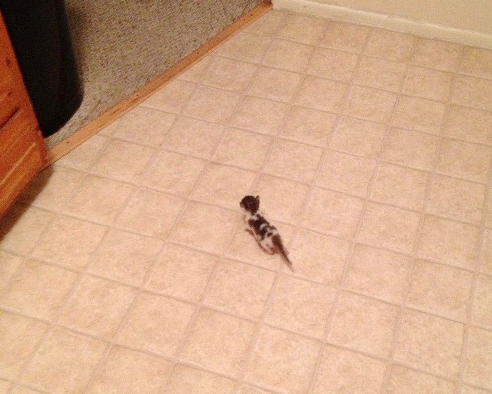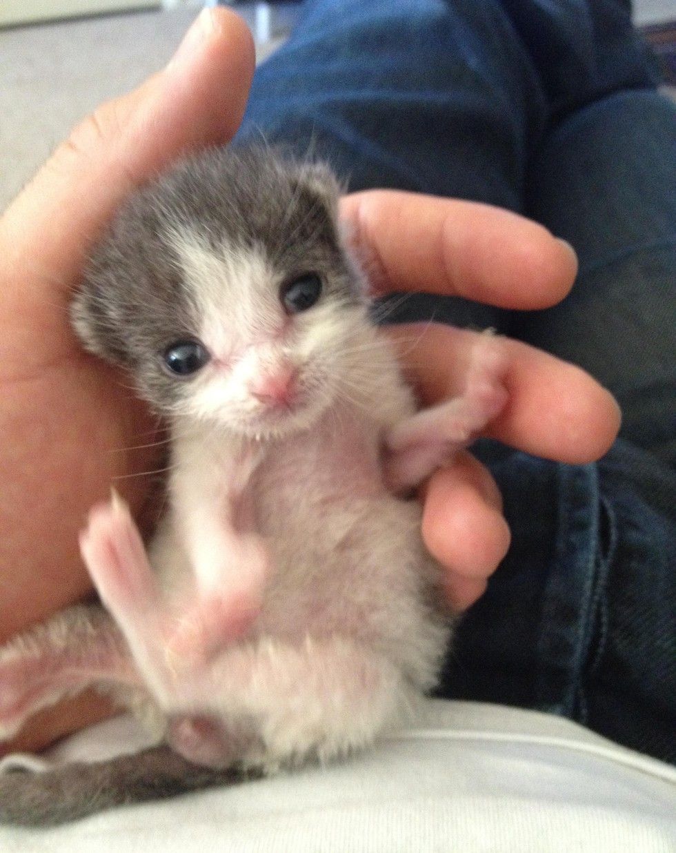 "Found this little one in my back yard in a hole under the fence. She was the runt and the mom abandoned her after moving the litter," the young man wrote via imgur.