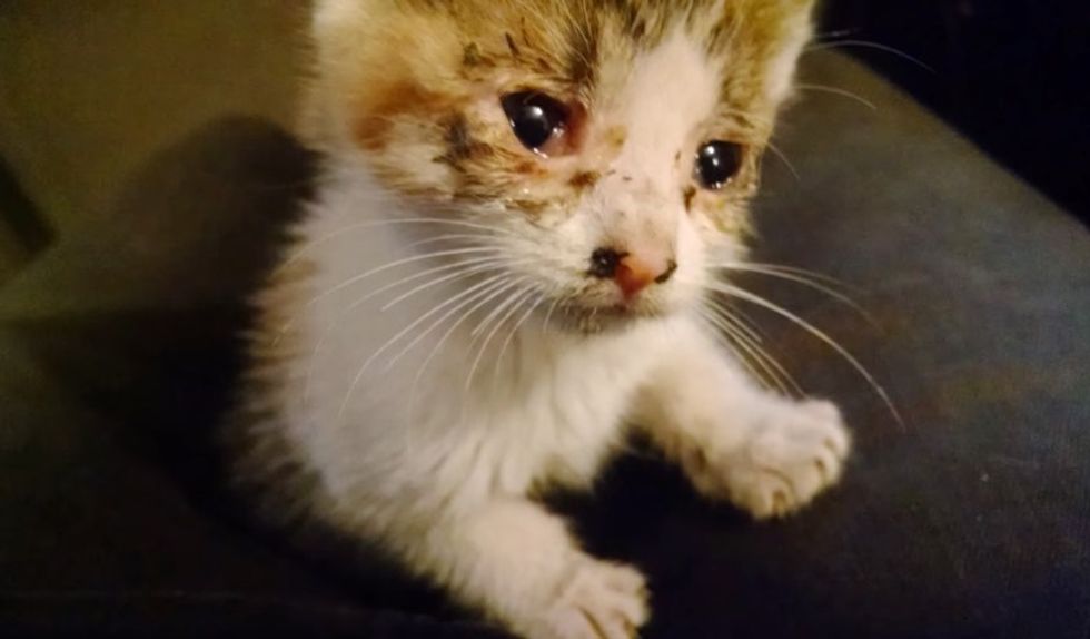 A biker saved a tiny abandoned kitten from being run over in a busy street. The kitty clung to him, asking him to be her forever human.