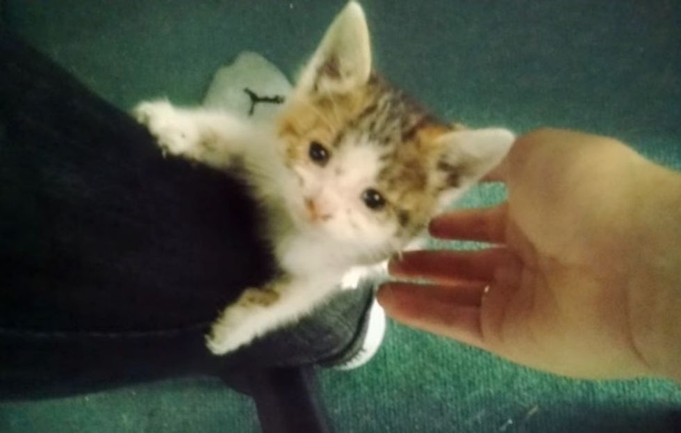 When the kitten cried for his attention and fell asleep in his lap on the first night, Shephard knew the little calico had decided where she wanted to be, and the rest is history.