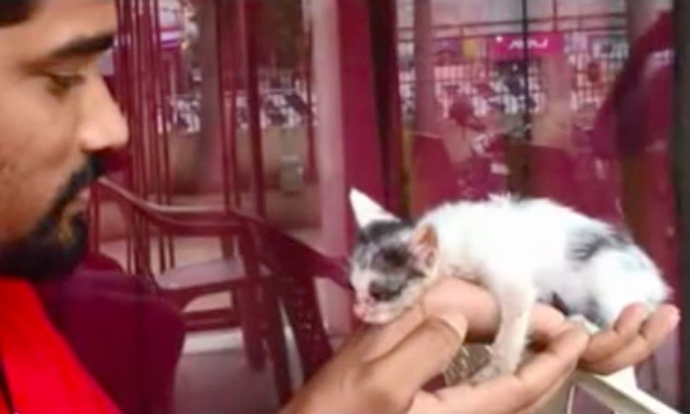 A kind hearted man, Peter, spotted the kitten and knew he had to help.