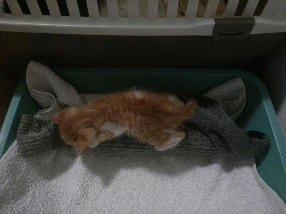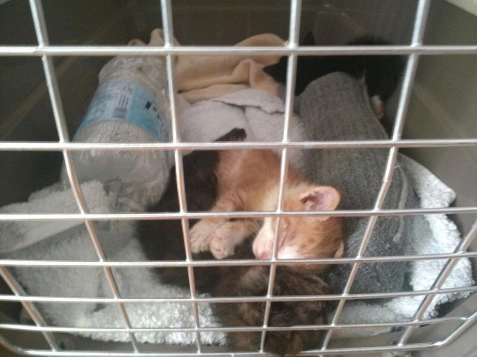 Besides bringing them blankets and any soft things they could find, he filled a bottle with hot water and wrapped it in a sock to resemble the warmth from a cat mamma.