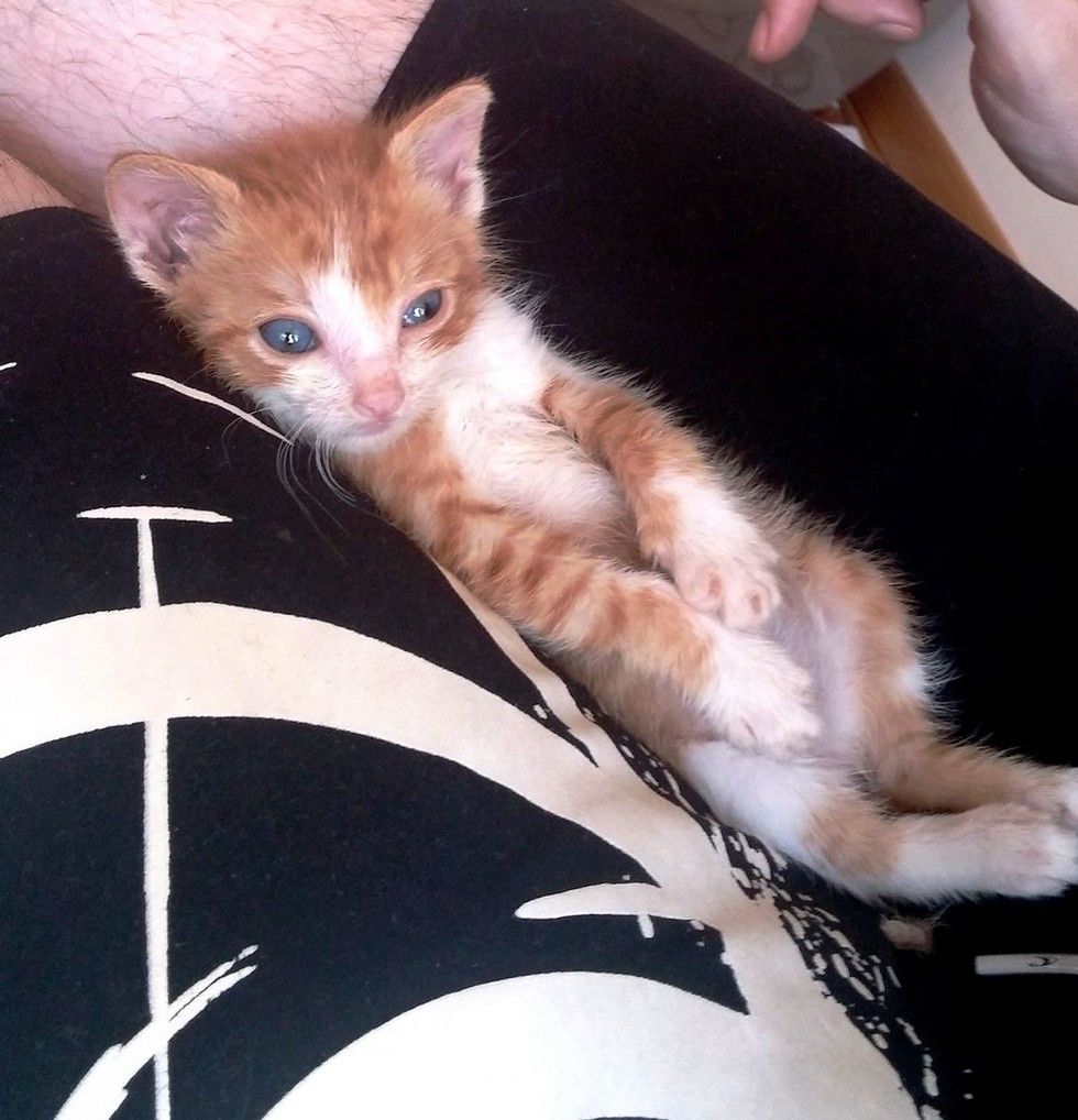 Just when his friend arrived, they spotted another kitten. There was a third one, a ginger, who was barely alive.