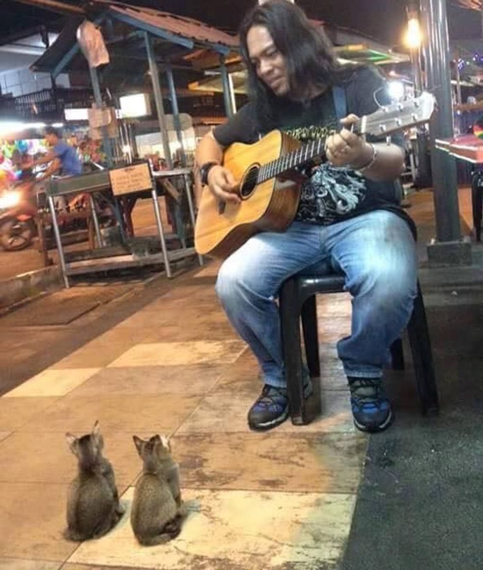 At one point, the kittens bobbled their head along with the beat. Jass Pangkor Buskers was delighted by his little furry audience. The kittens didn't move away while they listened to the music.