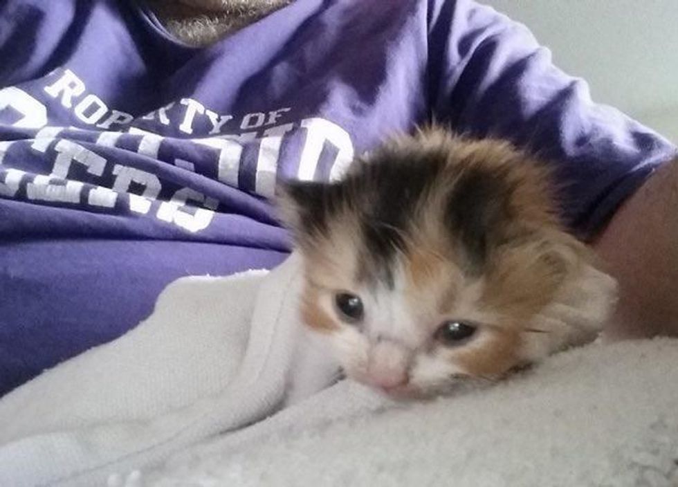 "It was impossible for any cat to have been in that space. I came to the conclusion that someone had thrown the poor baby up there and left her to die. I immediately took steps to make sure she was going to live. My son took great care to make sure she was fed."