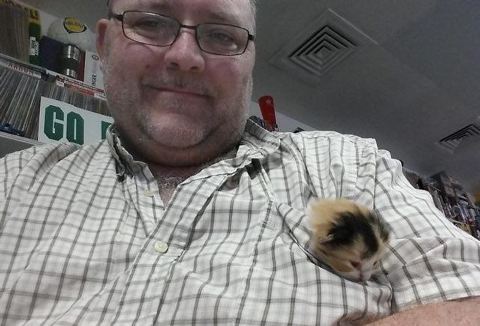 Little Fluffy fell asleep in her rescuer's pocket while he was caring for her around the clock.