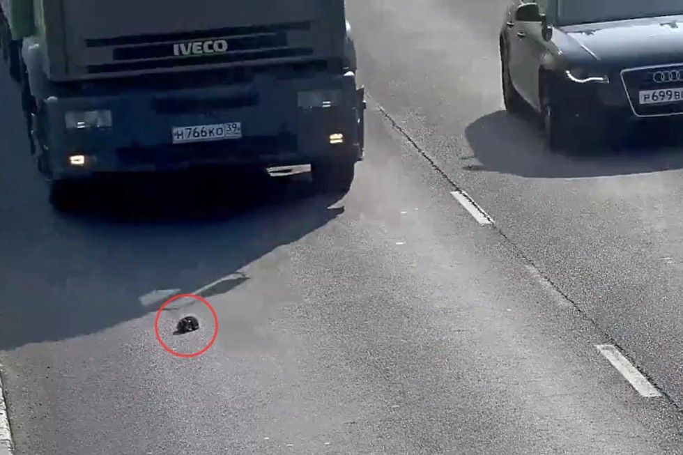 A CCTV camera in Russia captured a tiny kitten fall out from a moving car in the middle of a very busy road. The kitten nearly escaped being run over by several incoming cars and trucks.