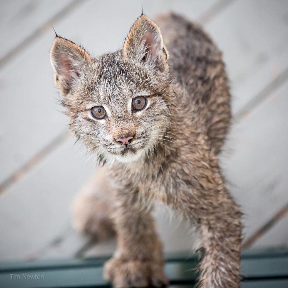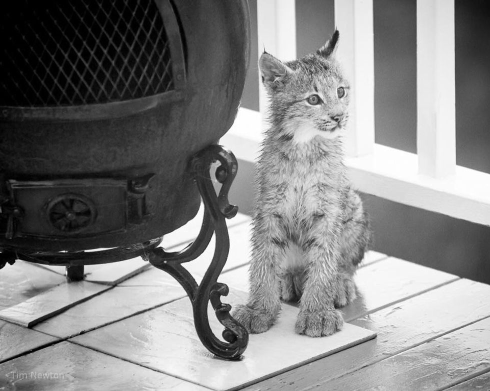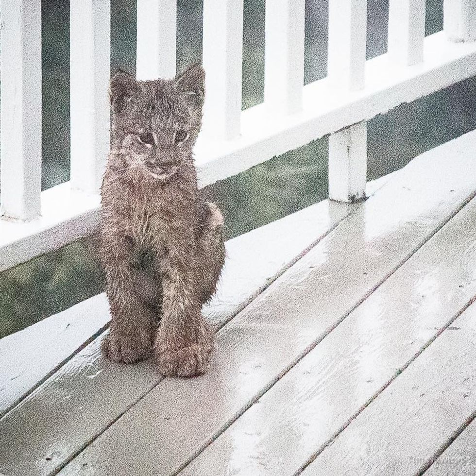 The "cat" was just two feet away from him, watching two others chasing each other back and forth across the deck. As he looked closer through the window, he noticed the long tufts on their ears. Those paws were the size of their face. Suddenly, it hit him that they were lynx kittens, about the same size of an adult domestic cat or larger.