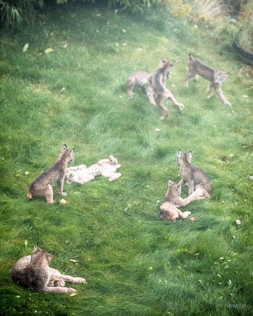 Tim Newton from Anchorage, Alaska woke up to a commotion coming from his deck. Upon investigation, he discovered not just one, but a family of eight Lynx running and playing enthusiastically as if they were throwing a wildlife party right before his doorstep.