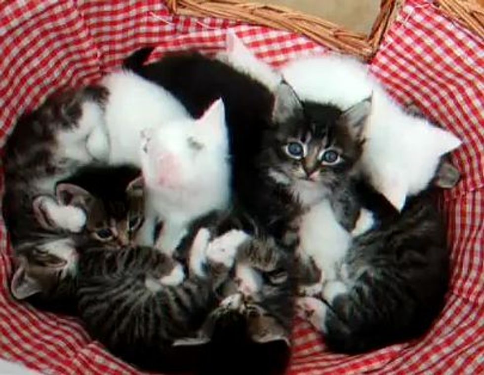 This bunch of adorable foster wee babies decided to take a nap together in a basket while their foster cat mama was watching them. It's a big, snuggly crowd. Can you tell how many foster kittens there are? :) You can see the answer from the image below. Just put your mouse over the image to see it.