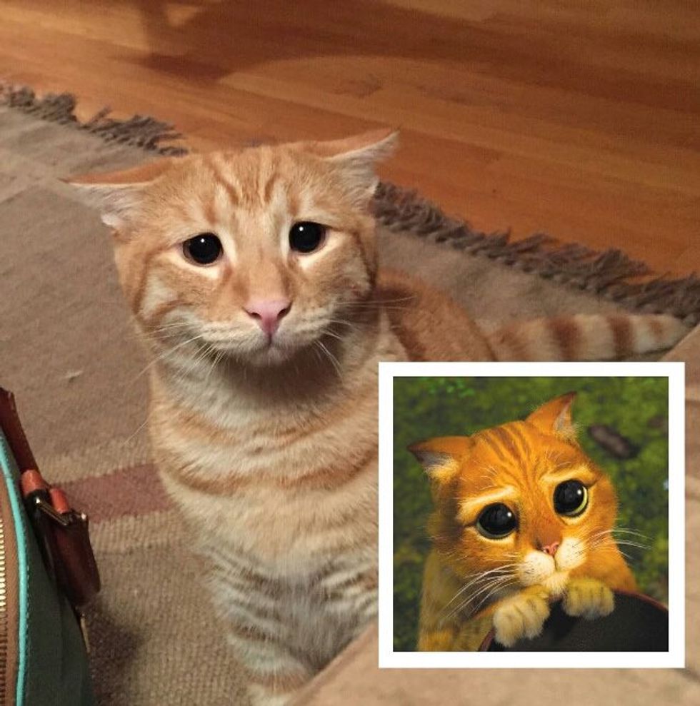 "The first thing I thought of when I looked at him was how much he looks like Puss in Boots from the Shrek movies.