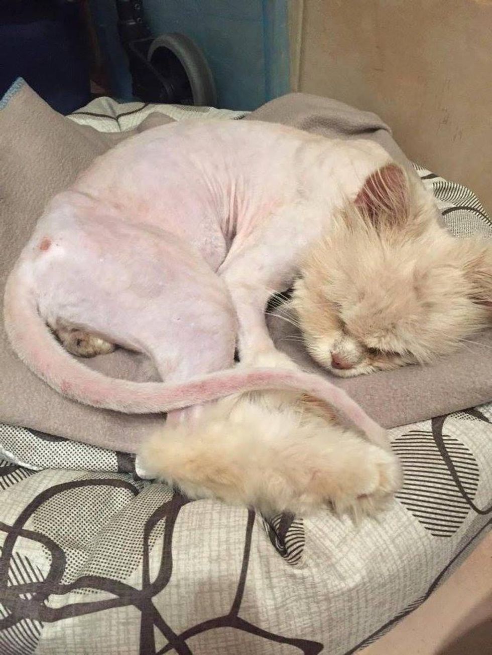 "Someone found him in a tree hiding from other cats that were beating him up," Happy Homes Animal Rescue told Love Meow. "He was abandoned and was out for long enough for this coat to get totally matted down to the skin."