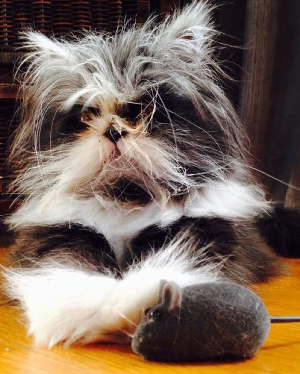 "Hypertrichosis is a symptom of a hormonal disorder that manifests in man or woman, for an invasive hair on body parts. This disease can also appear on animals and provides my cat with a funny look." - says Atchoum's human
