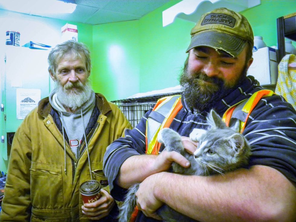 Last Tuesday when Leland Nason and his coworker, Chuck Lewis, came to Minto, New Brunswick (Canada) to collect trash, they passed a snowbank and saw what they thought was a dead cat.