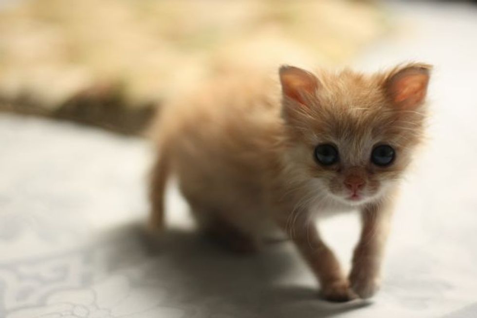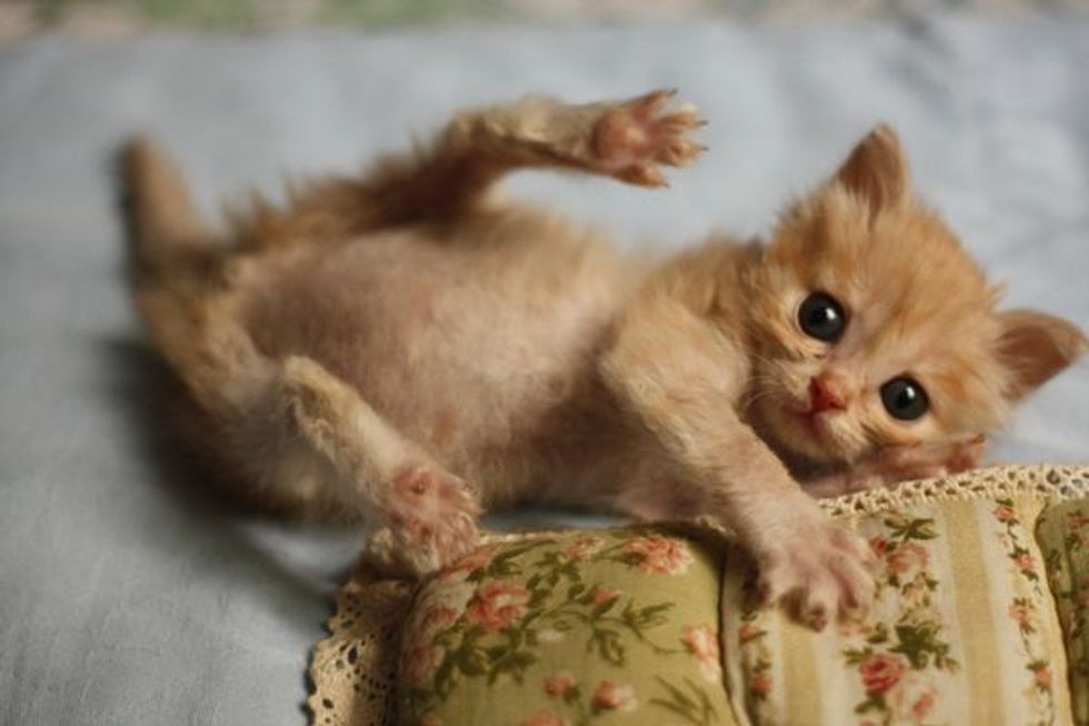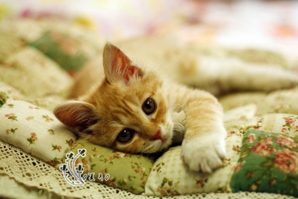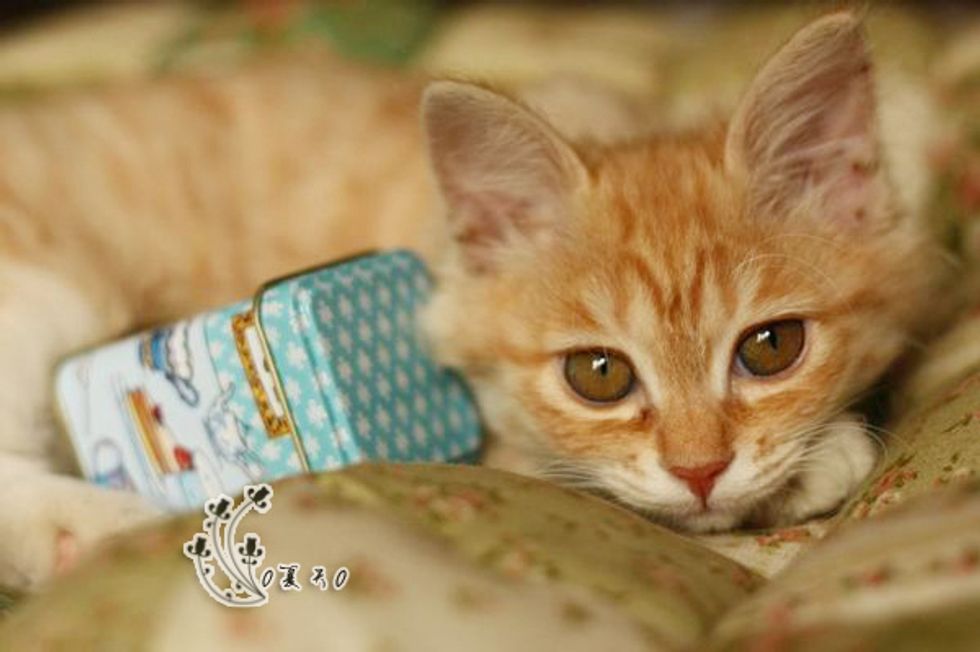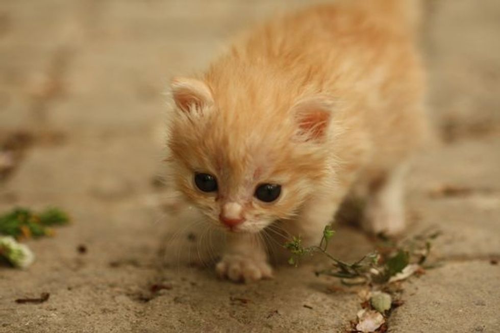 On April 3rd this year, when Summer went to take out the trash, she heard a kitten crying from the garden. She followed the sound and saw a little ginger fuzzball as big as the size of her palm, lying on the ground, crying hopelessly and alone.