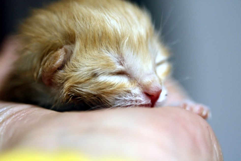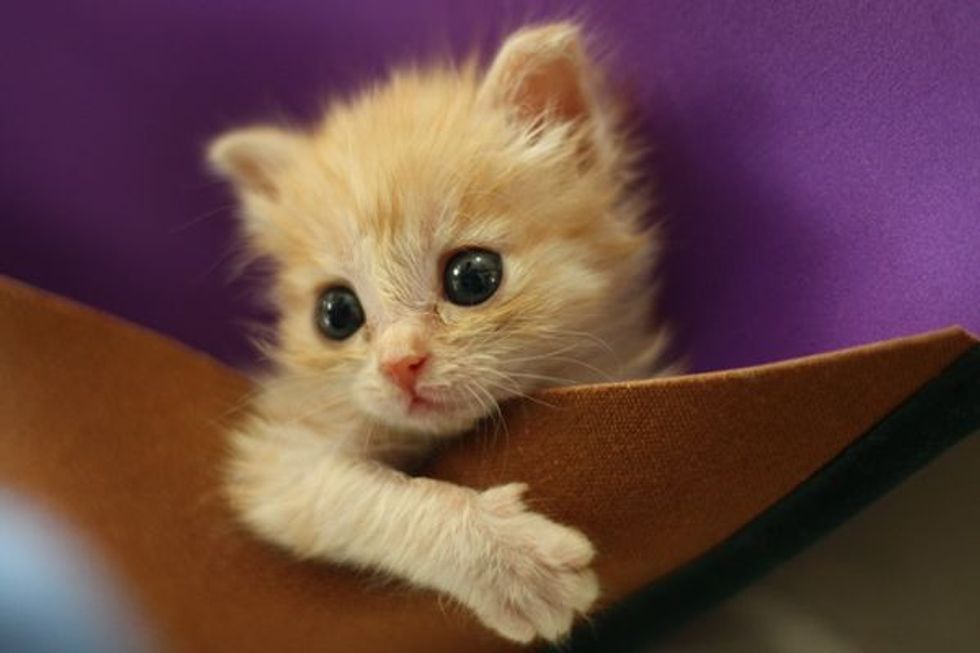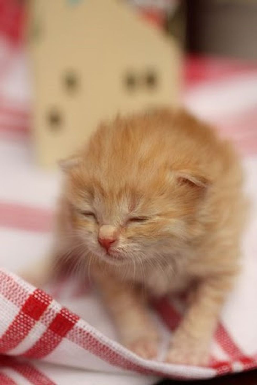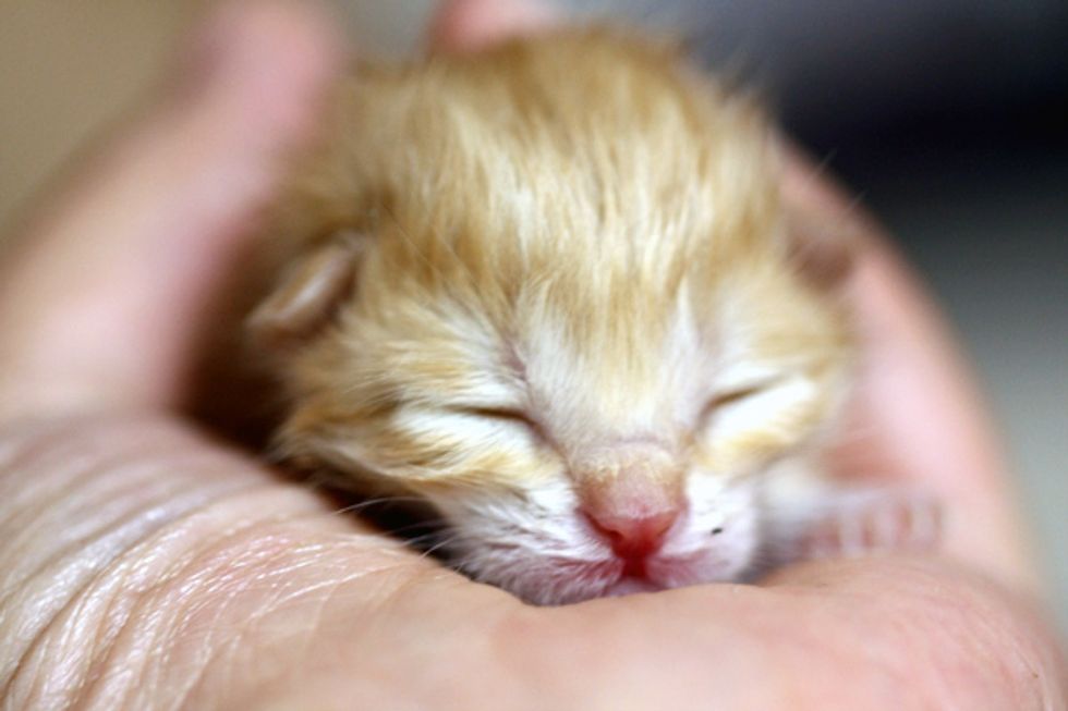 On April 3rd this year, when Summer went to take out the trash, she heard a kitten crying from the garden. She followed the sound and saw a little ginger fuzzball as big as the size of her palm, lying on the ground, crying hopelessly and alone.