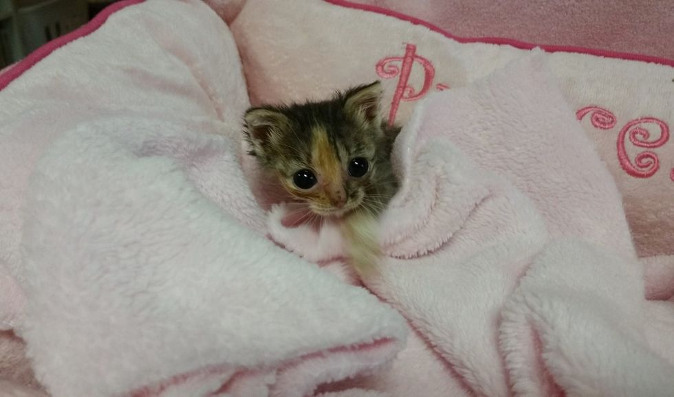 A tiny kitten weighed just about half of a muffin when she came to her rescue, hoping for a better life and a loving home.