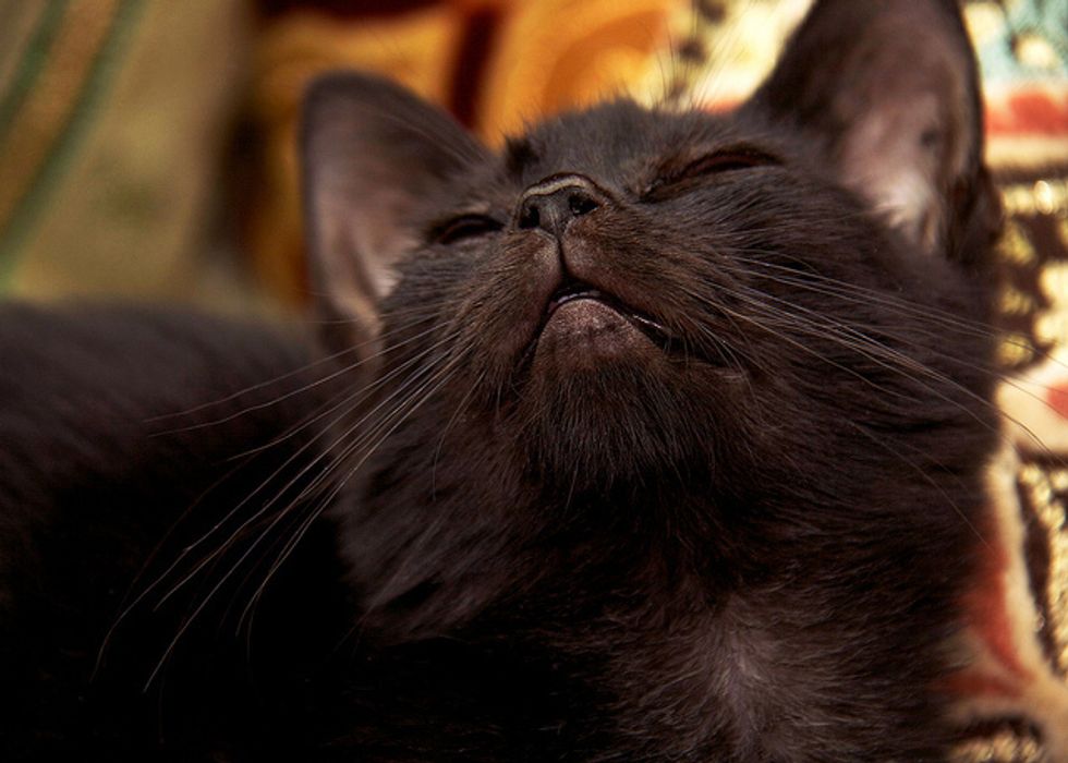 Michelle noticed a tiny, sick kitten on her way to the park. Midnight was living in between a fried chicken shop and a run-down apartment building. Everyday around noon she tried to nap in the sun in a patch of dirt next to a busy intersection. She was clearly in distress, with a badly infected eye and very underfed.