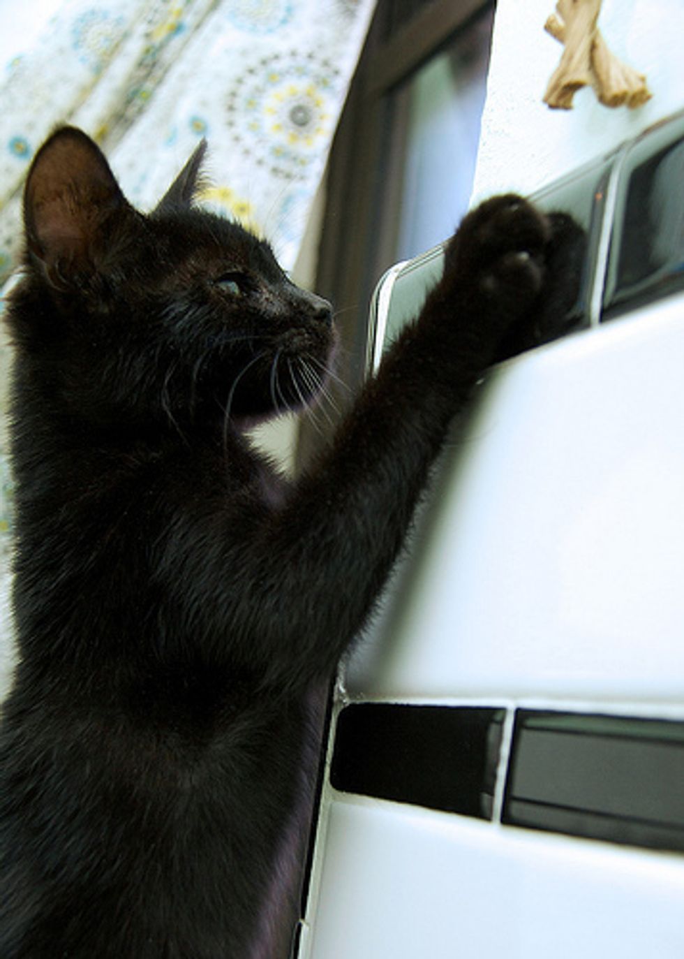 It's clear that Midnight always wanted a home of her own. She came litter trained and she only prefers to scratch the post. She has never bitten or scratched us, even when she was very scared. Sometimes I wake up in the night to find her licking my hand though!