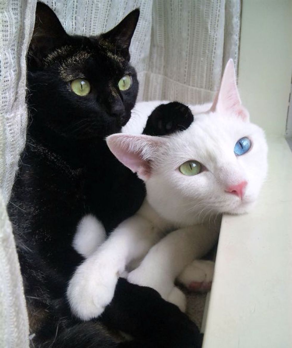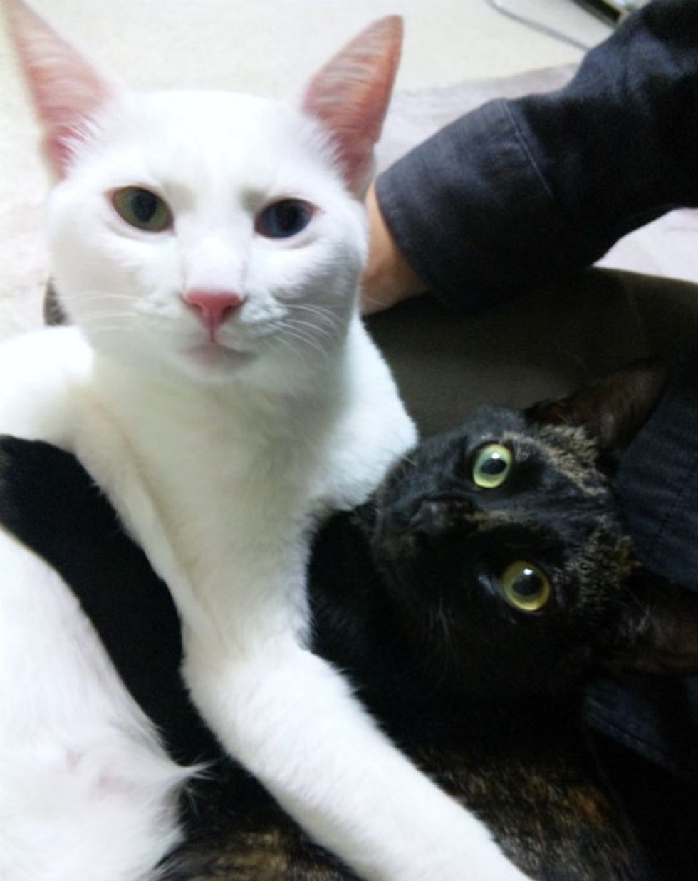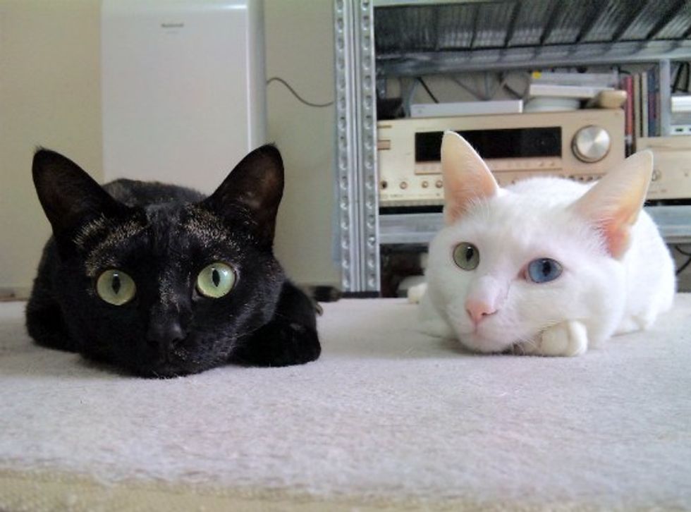 Milk and Cocoa are purrfect for each other. They are "like Romeo and Juliet," said Ryusuke, their human dad. Milk has a pair of odd eyes that are blue and yellow. Cocoa complements him with his lovely tortie markings and jaguar like beauty.