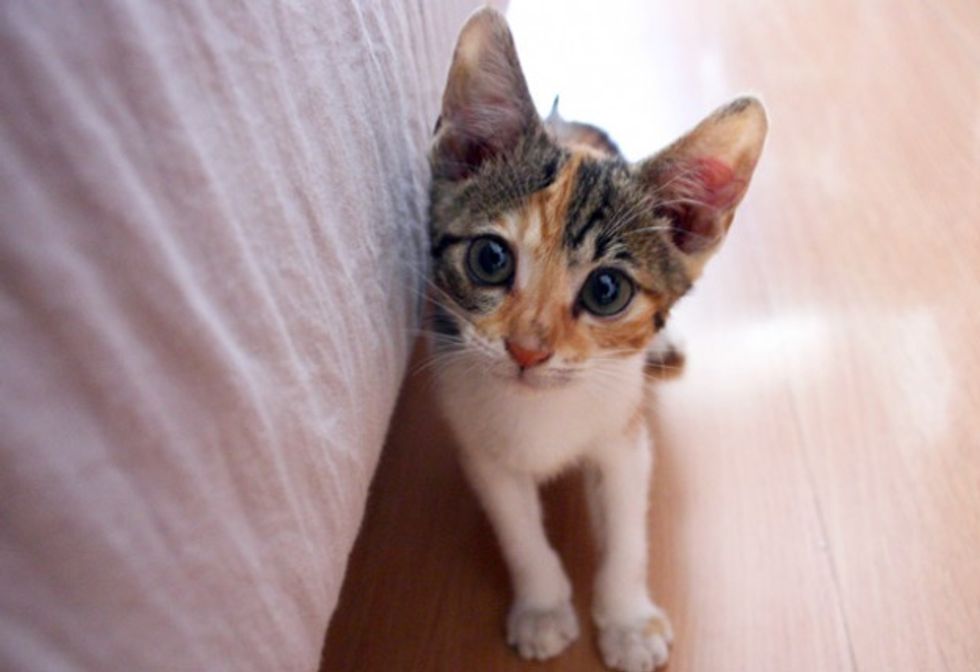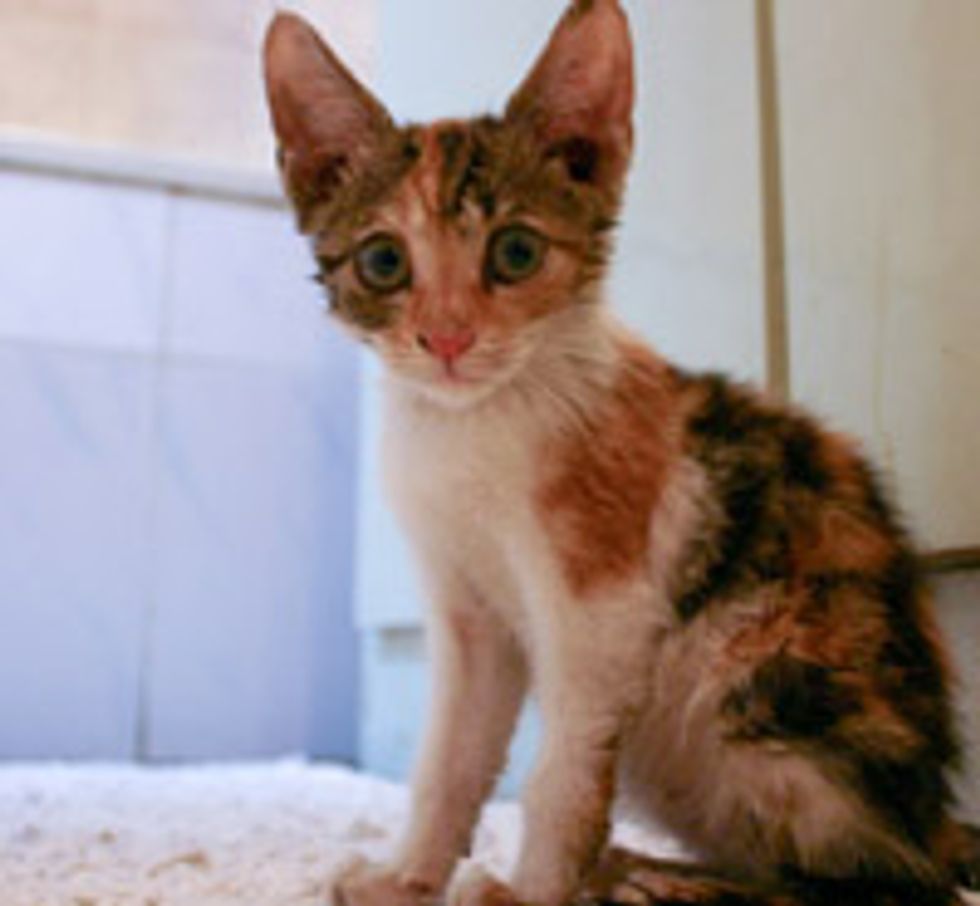 She reminded me of my old cat Mimi who was also a Calico. This little poor thing was skin and bones with rain dripping down her dirty coat. I couldn't bear seeing her like that, so I picked her up and brought her home.