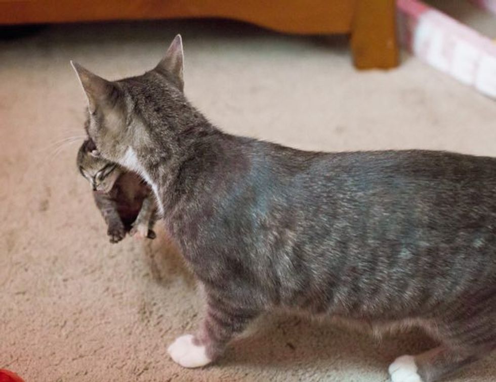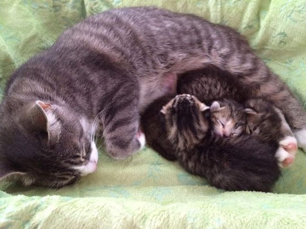 Mikey is an amazing momma cat who unfortunately lost all three kittens of her own. She found happiness again when she was given three orphan kittens who were in need of some motherly love.