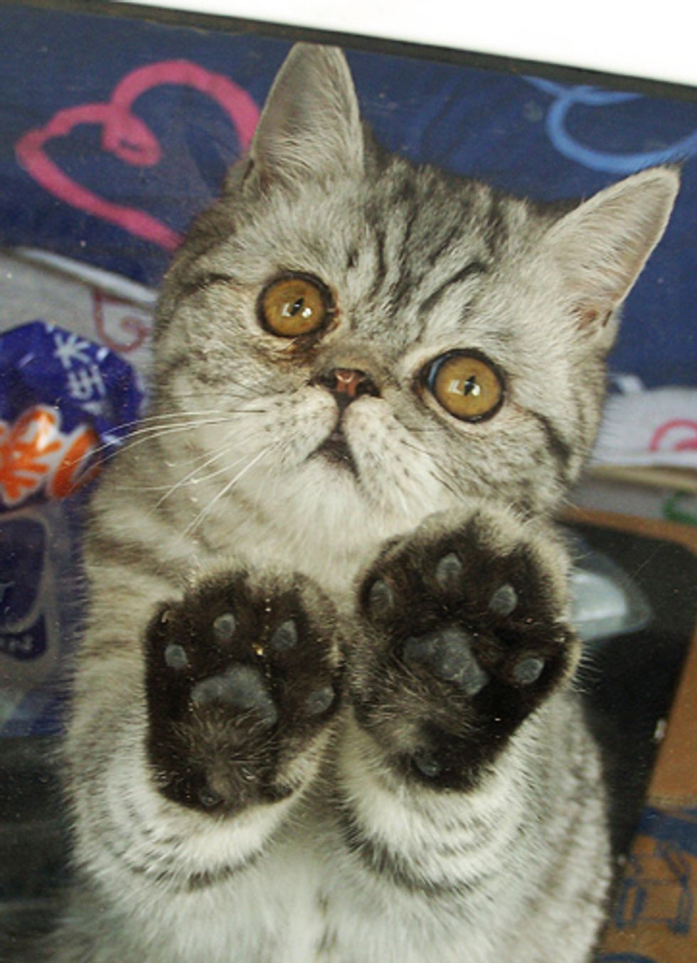 "This one was taken from the other side of the glass. I love his big furry black paws so much! Momo is so sweet and quiet but he was born with a malformed head... I was afraid that he could not live for long but he did it and grew up happily." - Veraecho