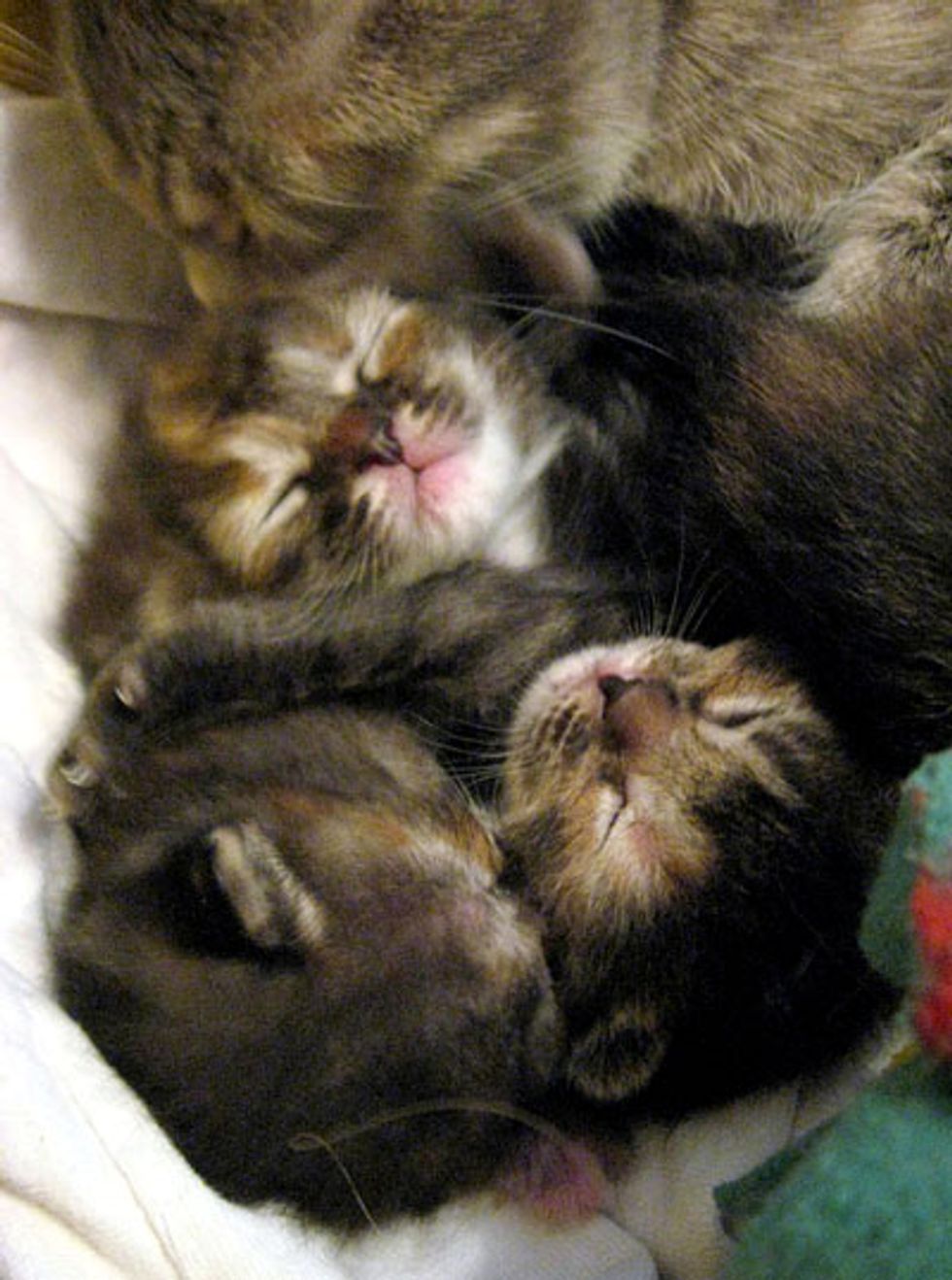 Check out Momo's siblings: Zippy the red head and Manny the snuggly furball.