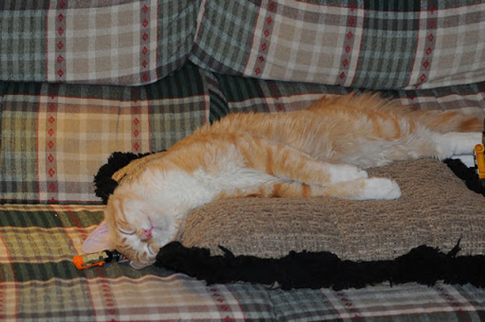 Monkey can crash anywhere for a nap whether it is the edge of a couch where he can possibly fall off, a corner of the room, a tiny little box that is obviously too small for him, or any interesting napping spots that Monkey finds perfect for himself.