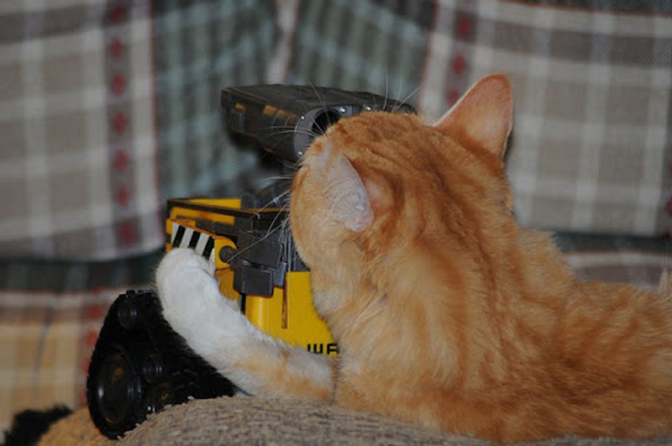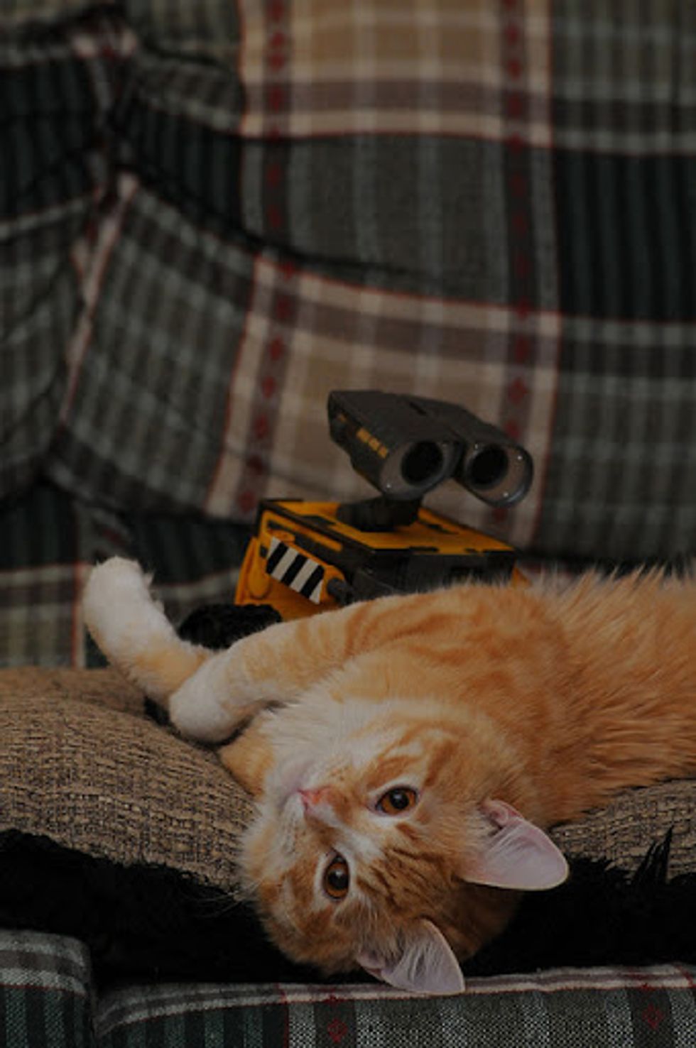 One of Monkey's best friends is Wall-E, the robot. As you can see from the photos, they love each other :).