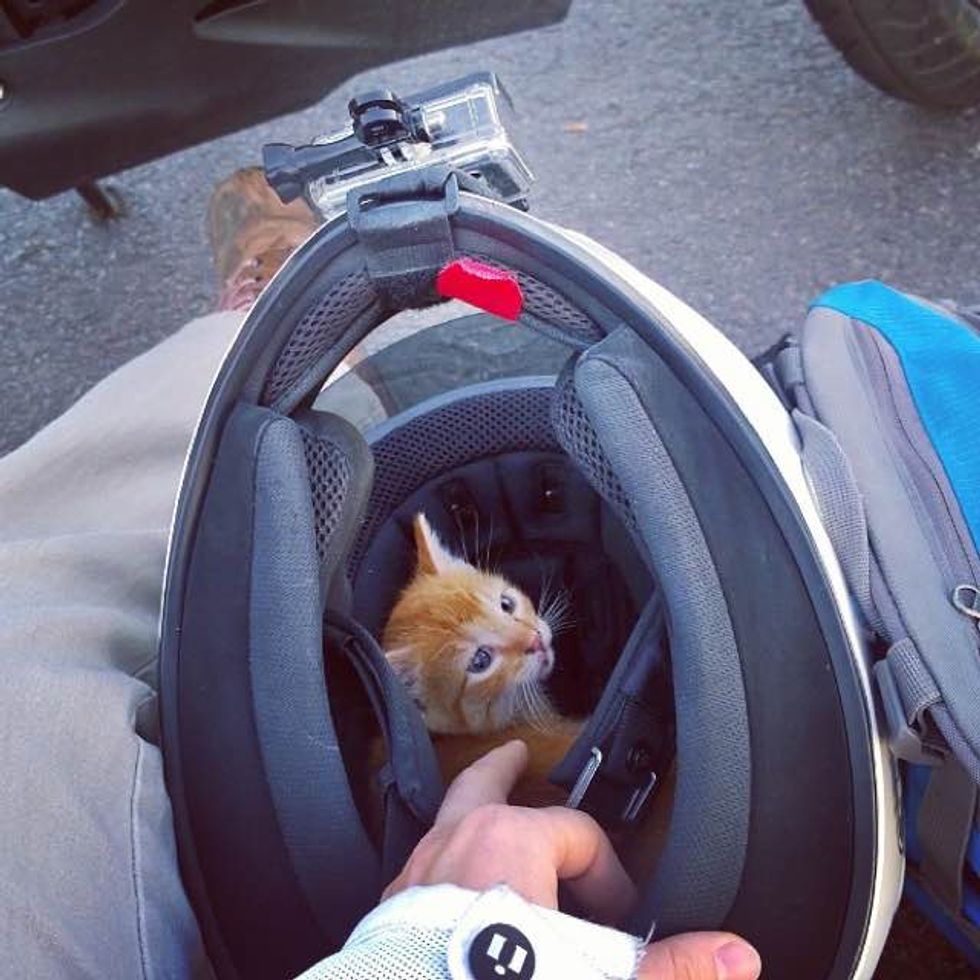 For now, little Skids is a keeper forever for the motorcyclist. "It would be very hard to give away a cat that came into your life like this!"