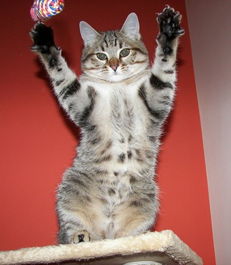 You can try to get some interactive cat toys where you can play with your cats while bonding with them. Laser pointers or feather wands are excellent toys that you and your cats could enjoy. If you have Maine Coon cats, you can even play fetch with them. Choose a toy that would entice your cats to get off their butt and start moving, jumping or rolling.