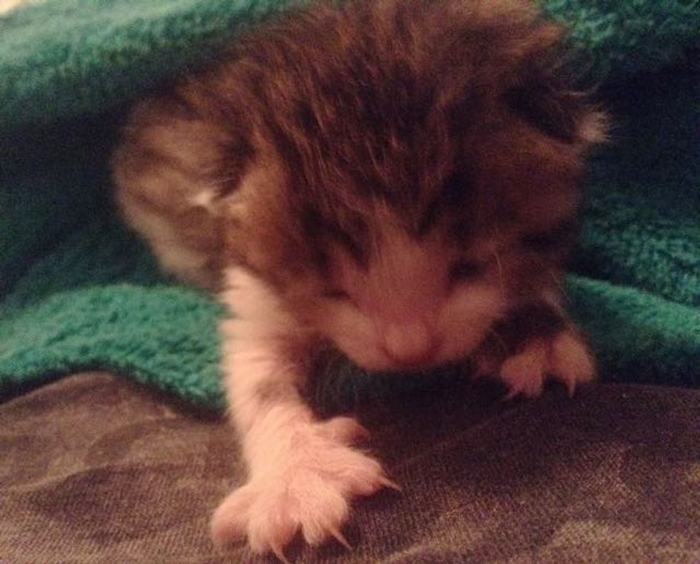 A tiny newborn kitten was found out in the cold and rain. A kind woman couldn't believe her eyes when she saw the lifeless kitten lying on the ground. As soon as she spotted a heart beat, she knew there was hope.