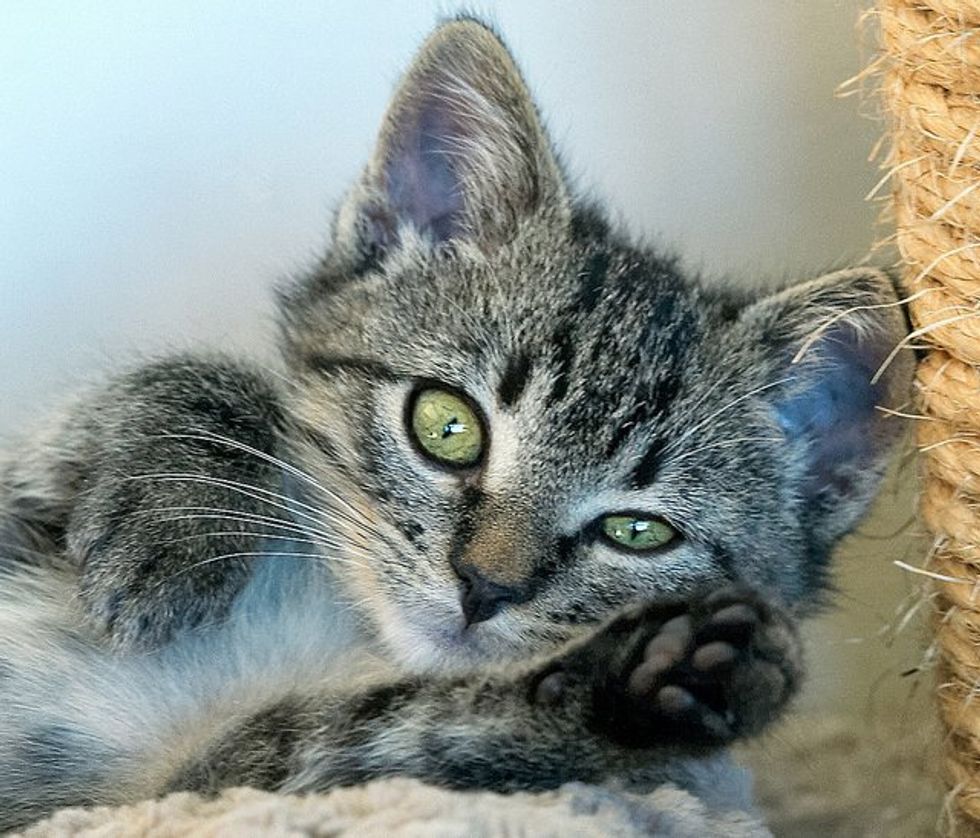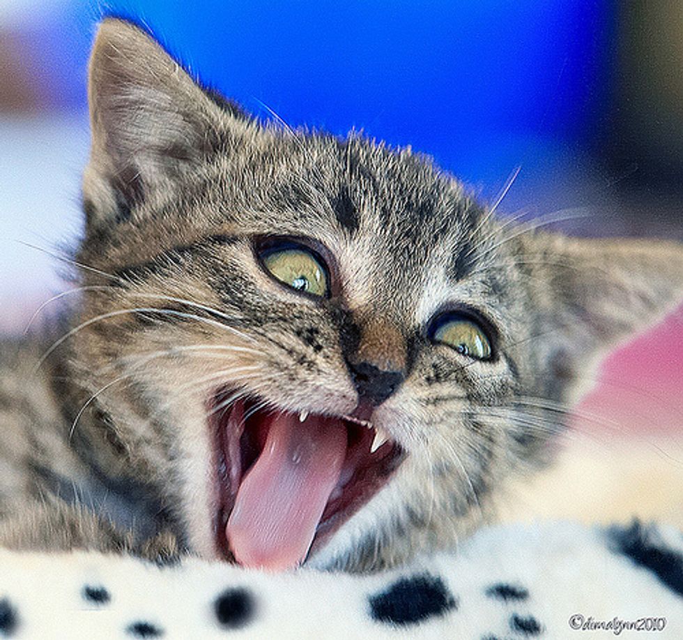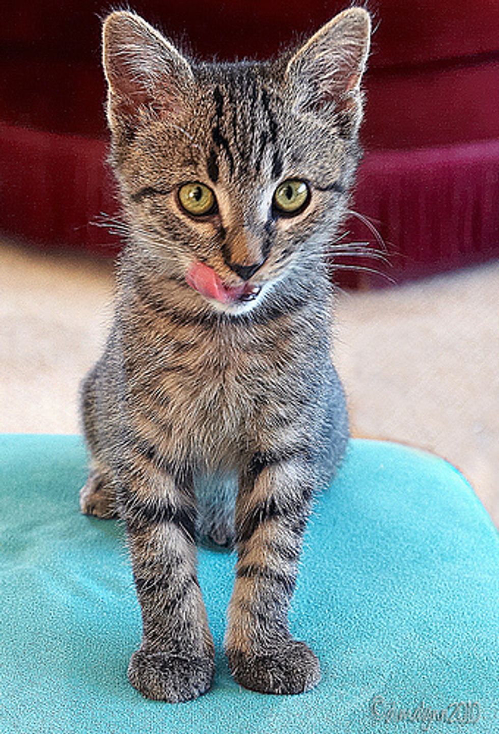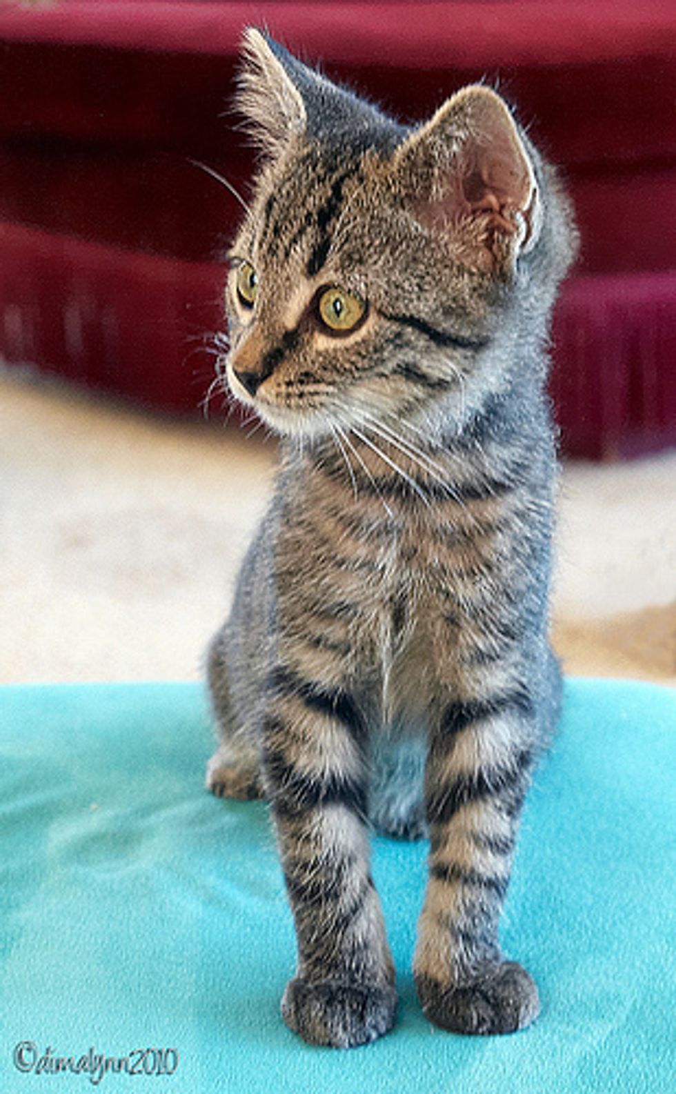 He has tripled his weight in a month from 12 ounces to 2 pounds and 4 ounces and also has a huge appetite for life. Tenacious, fearless and more than a little bit cocky, we have decided that there is a nation somewhere waiting for him to grow up and become dictator. The adult cats attempt to teach him manners but he wears them down and we have had to do more than a little bit of protecting them from tiny Nico. Our adult son refuses to call him Nico or Nicolai. He has dubbed him "Danger Kitty" :)