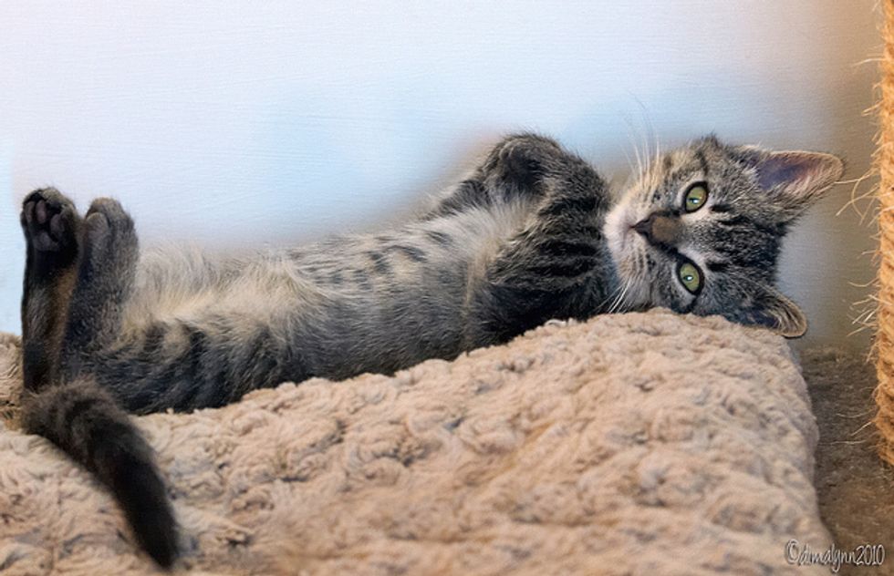 Nicolai is the newest addition to the home we share with 4 other cats and 3 dogs. He was abandoned on our shop foreman's porch at approximately 4 to 5 weeks of age, obviously someone's throw-away, he was very people "friendly" right from the start. Three of our adult cats were rescued as kittens from a feral colony and ferals definitely do not sit at the door and meow for you to let them in.