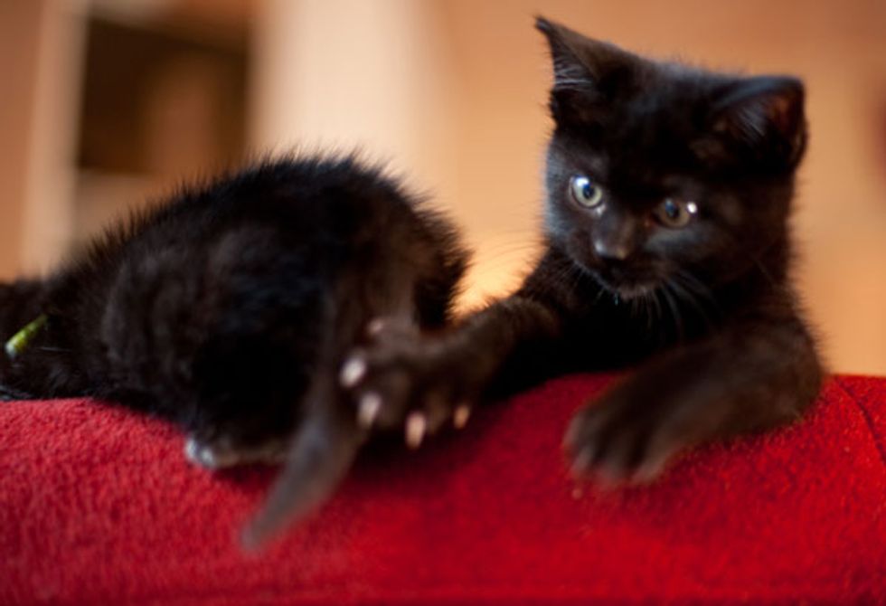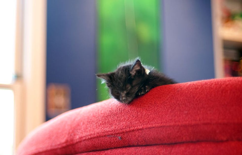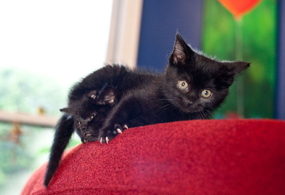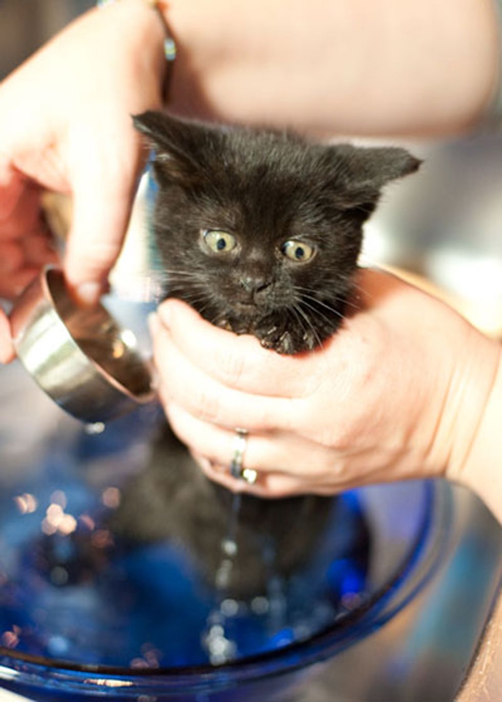 "Phoebe did just as she should and grew and was as healthy as a kitten should be. Nixie took a different route and we fought quite a bit to keep her alive," says Rachel. Little Nixie pulled through like a champ. "She was particularly hard to give up we had grown so attached through fighting for her life. She is pure kitten love!"