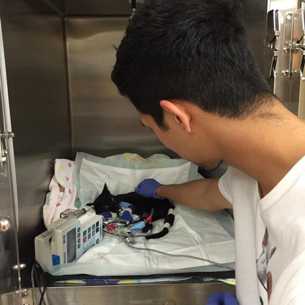 Max Louie shares with Love Meow: "At about midnight, we received a call that a critically ill kitten was being rushed to the vet ER. Shortly after arriving, her heart stopped. The vet brought her back to life, and she was immediately put on life support with a staff member by her side every second.