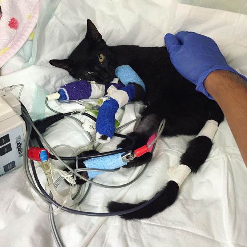 We decided to give this baby a chance to decide on her own by doing what we could on our end. We asked for at least 24-hours of the works: life-support, blood transfusions from a donor cat, antibiotics, vitamins, fluids, and continual monitoring. We prayed all night for her survival and happiness."