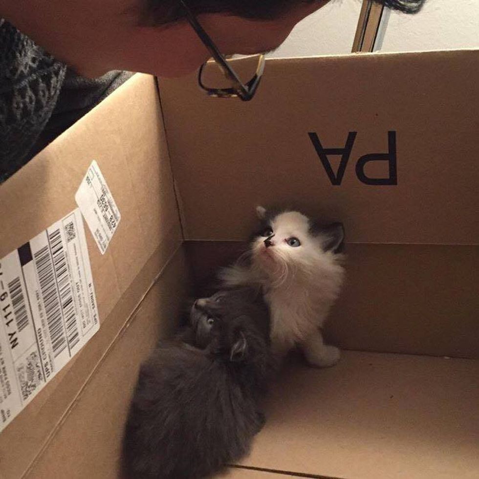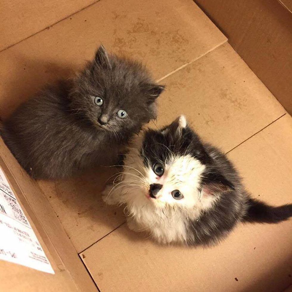 Two little homeless kittens were found on a driveway without a mother. No one wanted to take them, but a young man refused to let them be homeless.