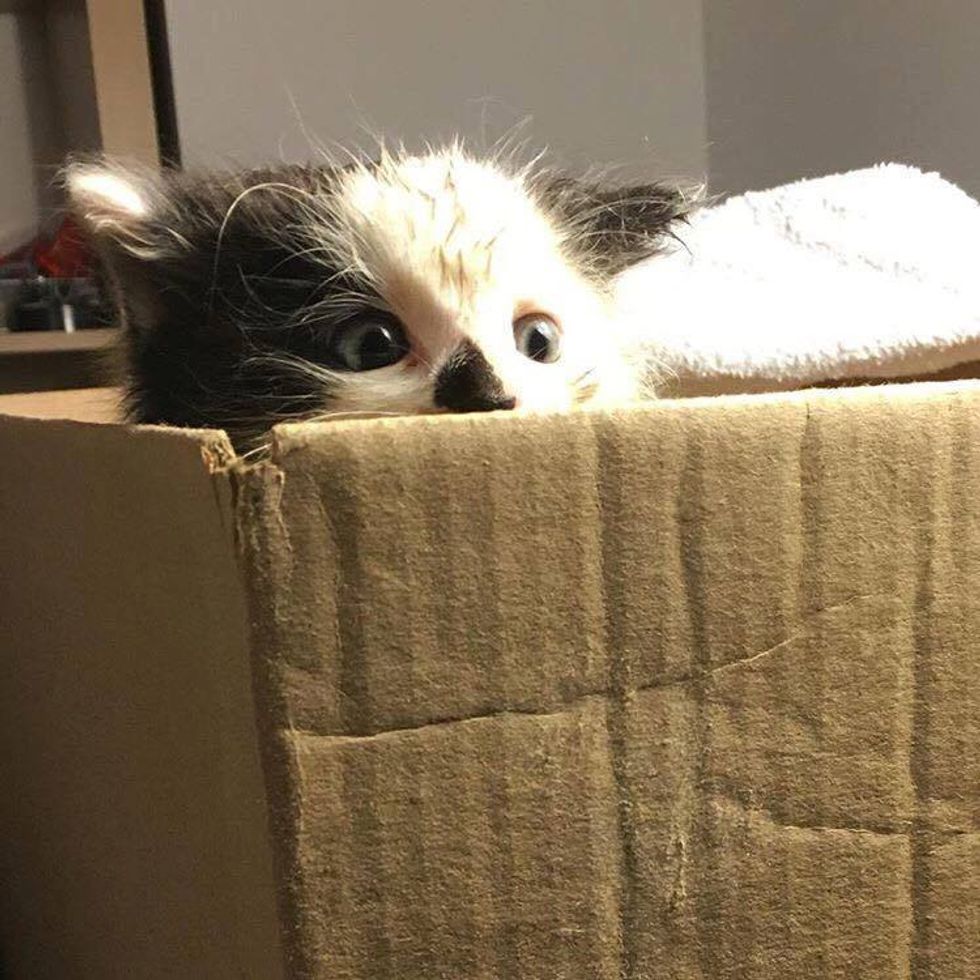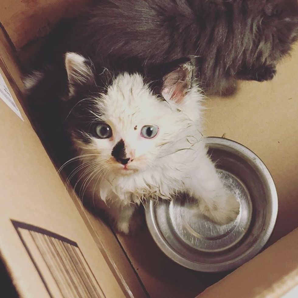 Hank took the two tiny furballs home for the night and the next day they went on their first trip to the vet. "The vet said it appears that their mother abandoned them a while ago since they were dirty and not groomed at all," Hank told Love Meow.