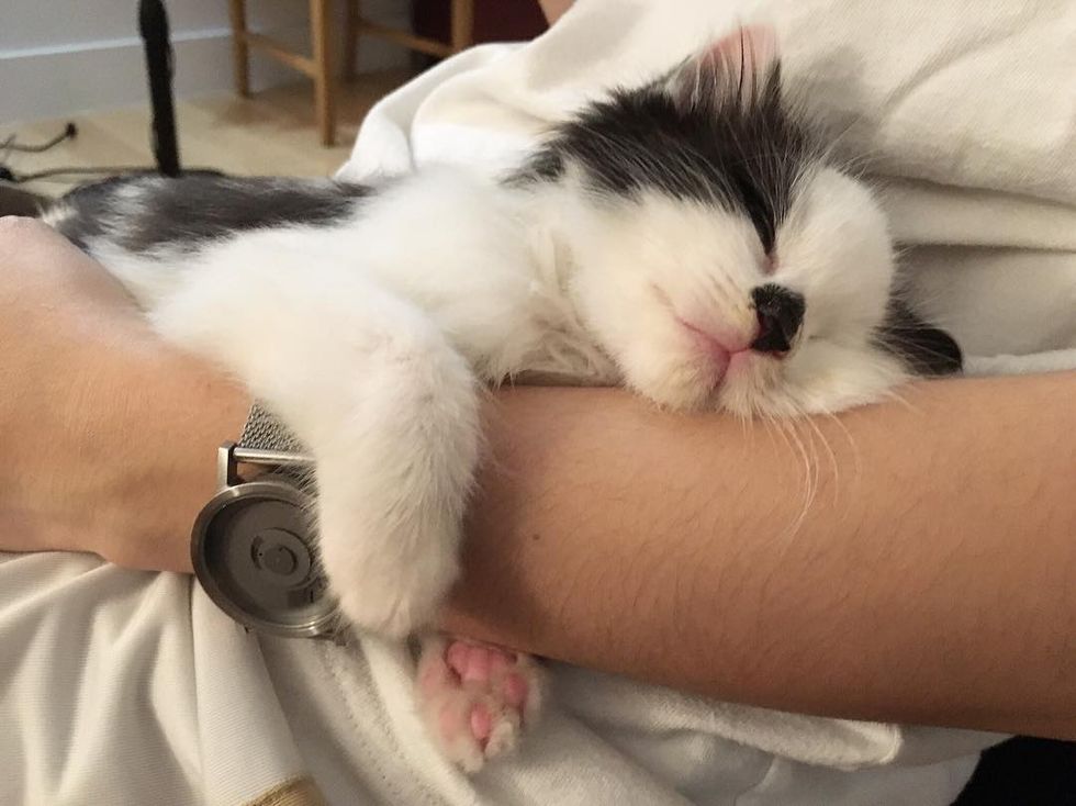 He bathed and cleaned the kittens and gave them lots of food as they were very hungry. For the first time in a long while, the kittens had a safe, warm place to sleep and a full belly.