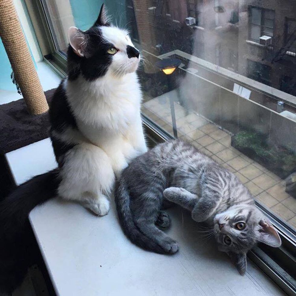 Now all grown up, Louie extends his love to another kitty that they adopted, Zoe.