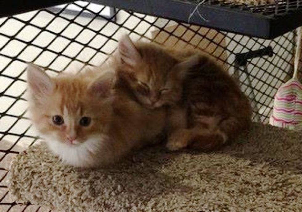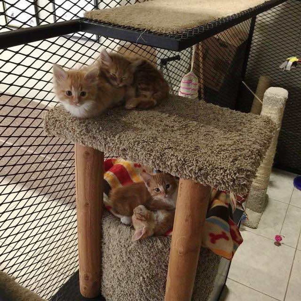 From what the chairman of the cat committee (yes, it's a thing) told me, they were found behind a dumpster with the mama cat. They were brought to the main shelter, and the mama died a couple of days later. The kitties tested negative, but they were brought to us because the last bunch of cats had been adopted, and the condo was empty. That way they were able to be away from the other cats until they got the all clear," reddit user Loocylooo wrote.