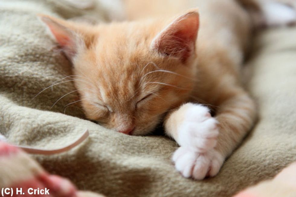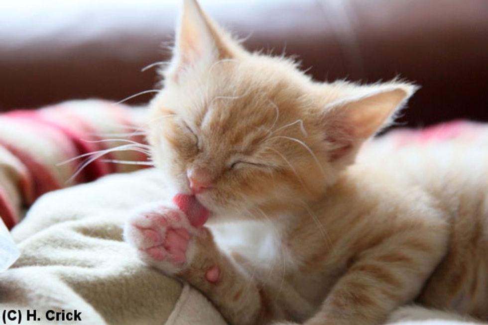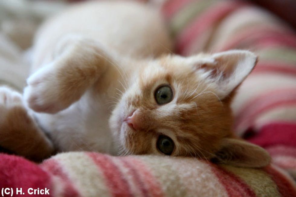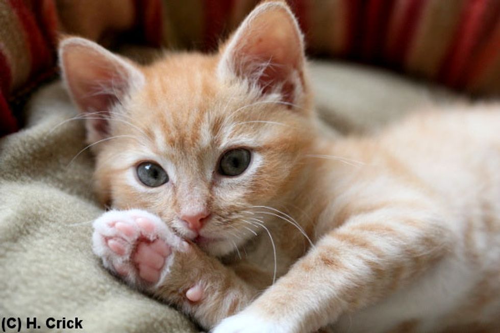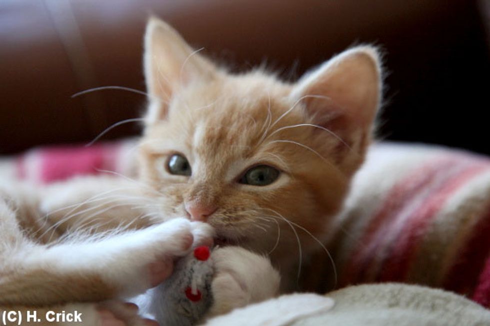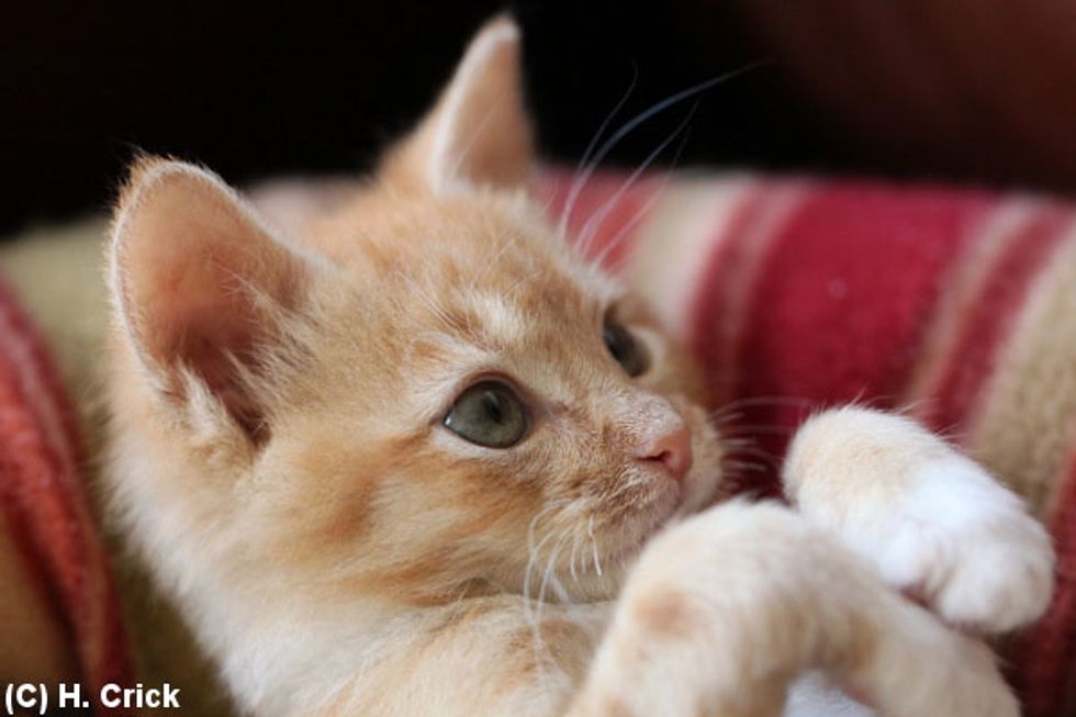 Oliver the ginger kitten beat all odds despite his 50/50 chance of survival. Not only did he make it through, he thrived with lots of love and care from his new home. "Oliver is a success story, and is putting on the right amount of weight, 702 grams now, and is playing a lot more daring and interested in things," says Hannah Crick.