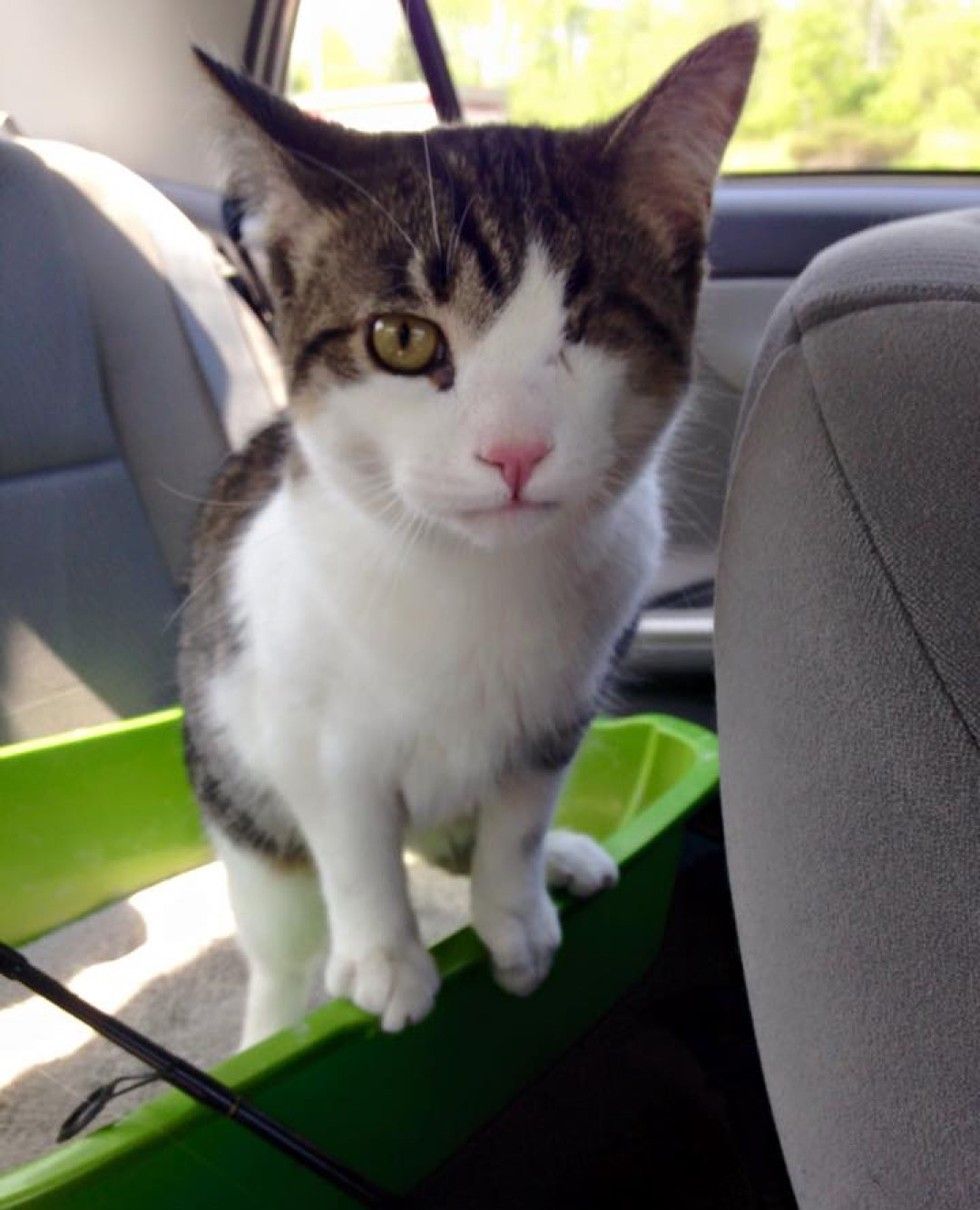 The one-eyed cat alerted Barnes when he was meowing from a bush.