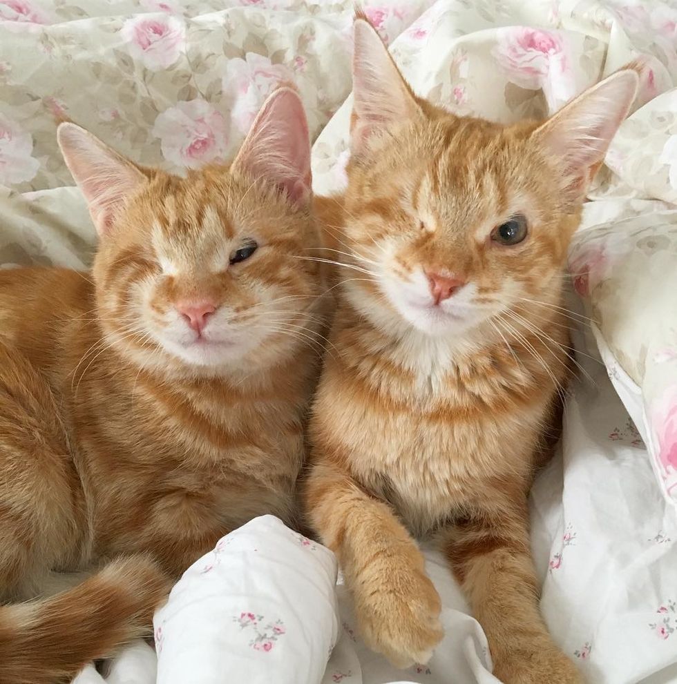 Jolie the tortoiseshell is completely blind but she was the most independent of the three. The ginger brother and sister never left each other's side. Beth quickly noticed the close bond they shared.