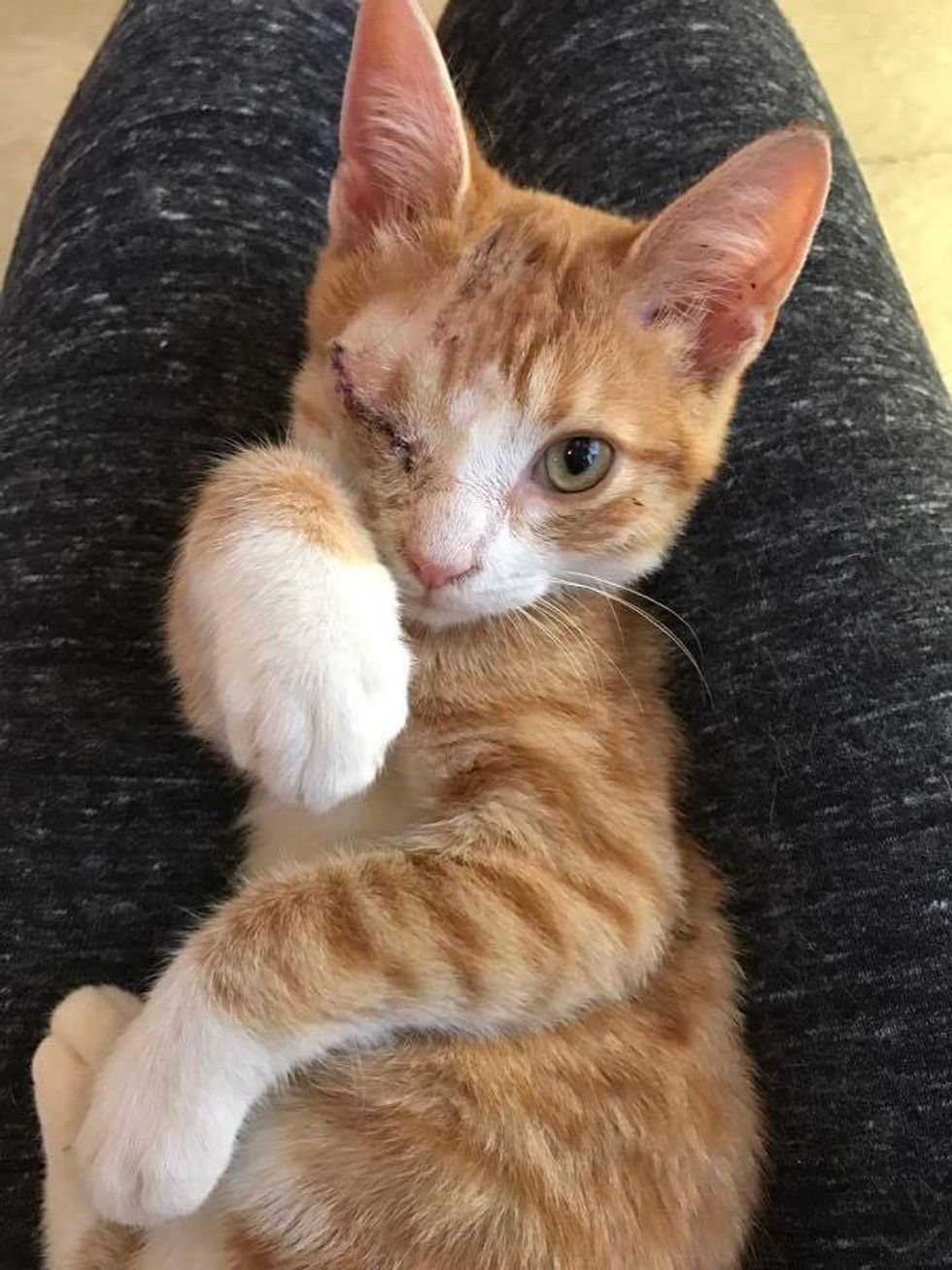 Mikey the ginger had an eye infection that his previous family could not afford to fix. After his infected eye ruptured, they surrendered him to the pound. "Animal Control removed his eye right away," CARF told Love Meow.
