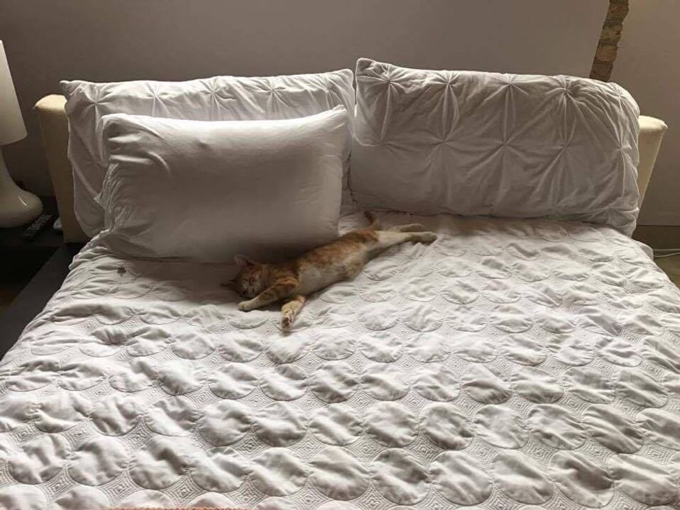 "Our little guy Mikey is getting used to the good life in his foster home!"