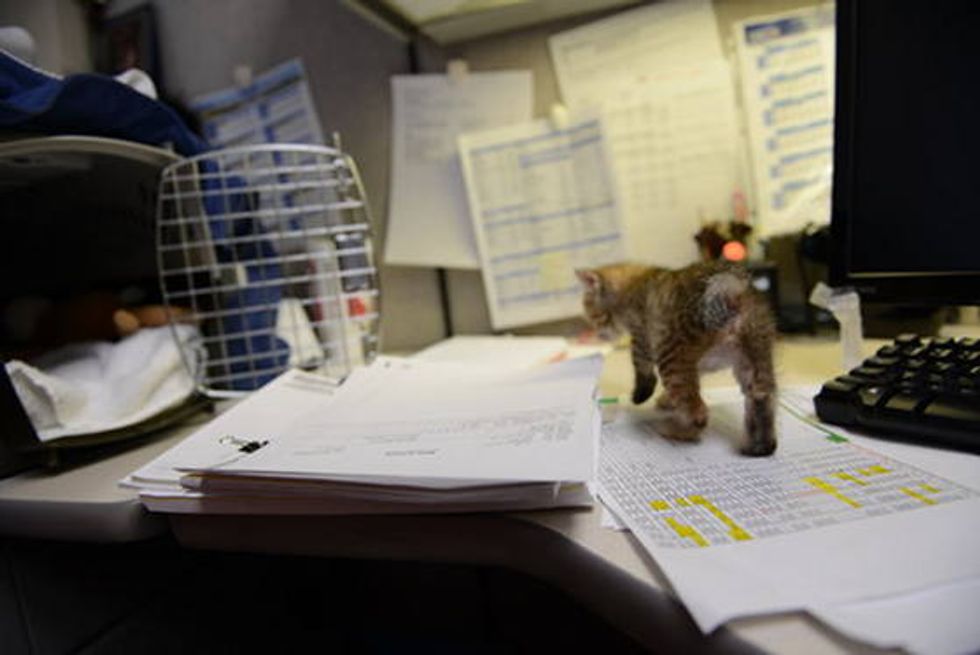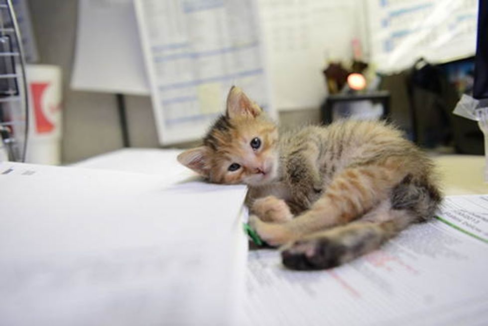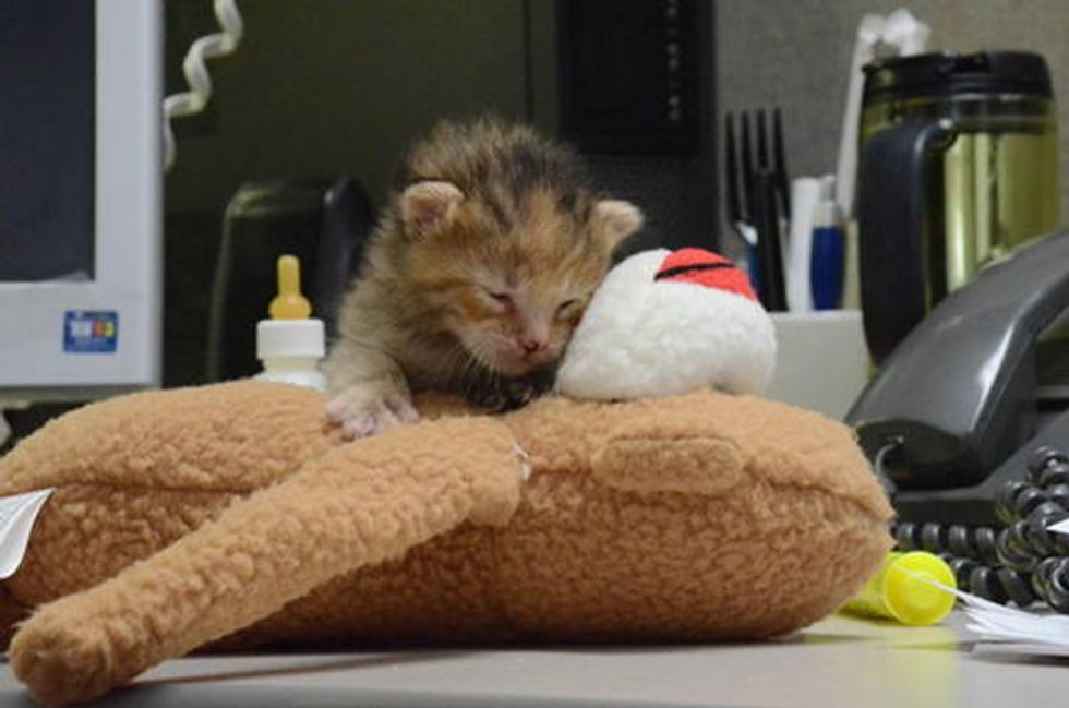 A small kitten was found by a Kens 5 & Kens5.com employee under a car in a their parking lot. The one week old kitten was clinging to her life. They brought her to their office and it became her forever home.