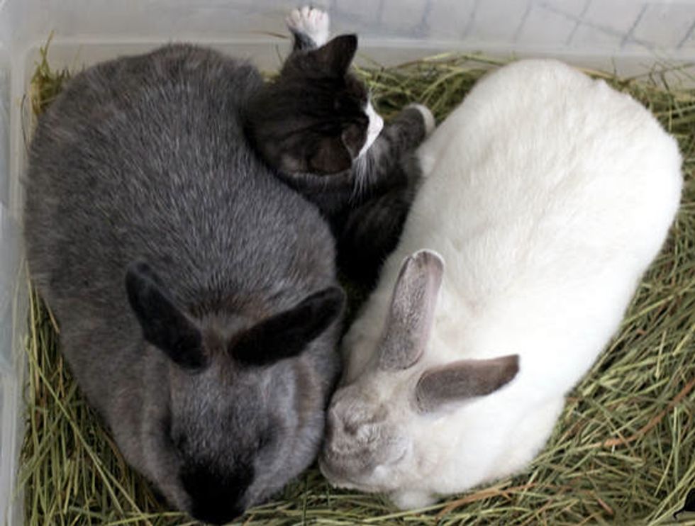 Mia came to her foster home as a tiny orphan kitten. When she met Marlowe and Melba the rabbits, a special interspecies friendship started to brew. Next thing they knew was that they could not separate these furry friends.