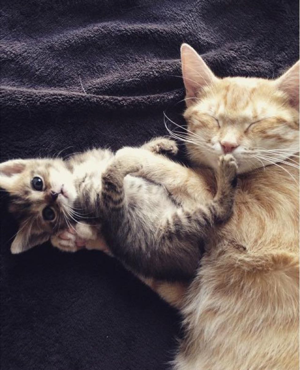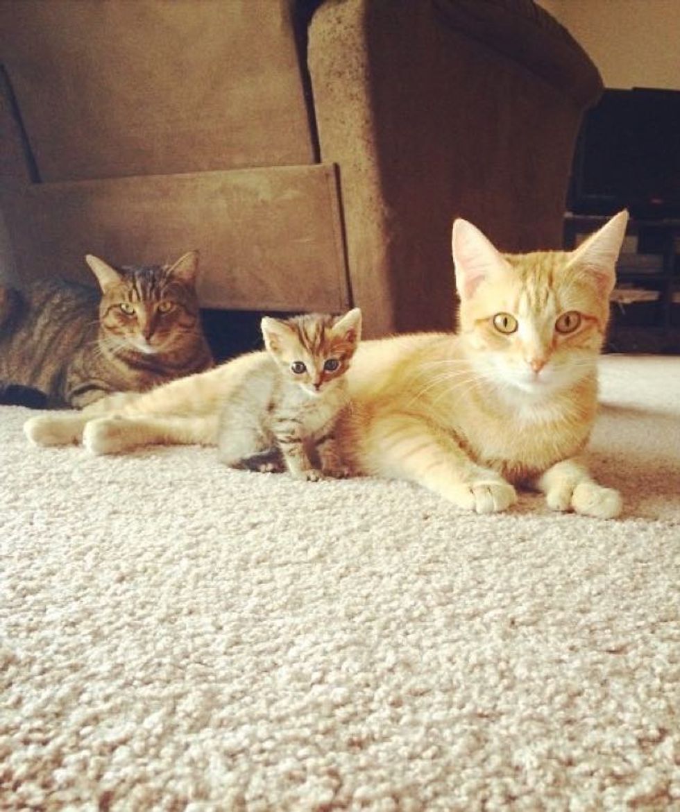Ashley B. wrote: "I adopted Sia from an animal shelter in my hometown almost three years ago, and baby Milkshake was sadly abandoned by her mother. Sia and Milkshake have the most loving relationship I have ever seen, along with my third cat Mokah (who is also adopted) They provide for me a great loving fur family, and I am always happy to come home knowing they are waiting at the door."